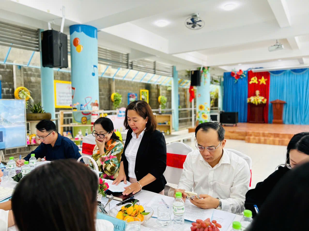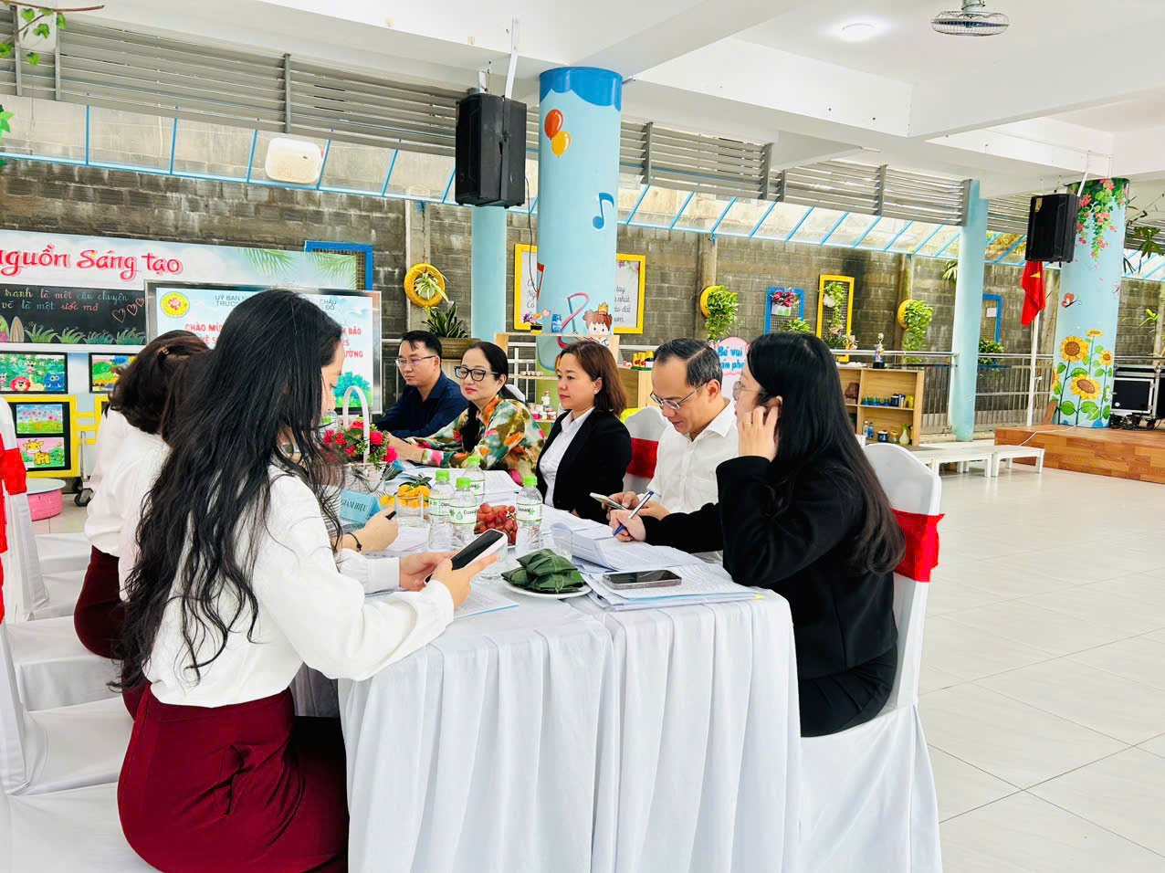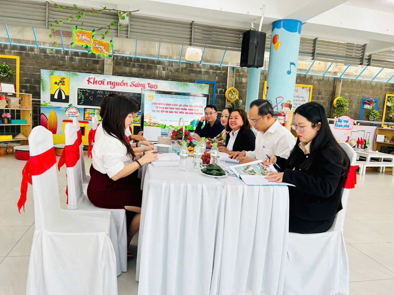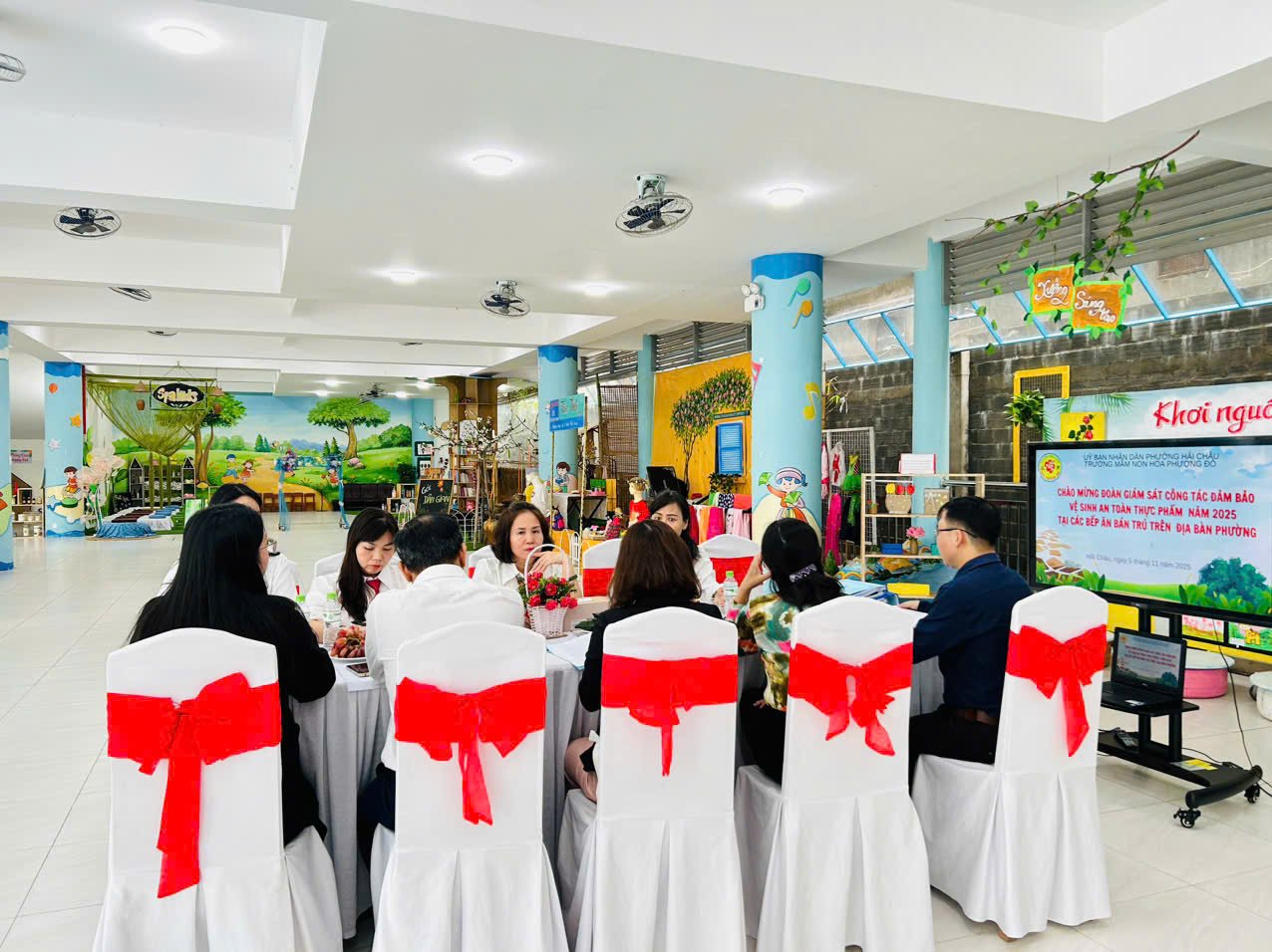 Ngày 05/11/2025 trường Mầm non Hoa Phượng Đỏ đã được đón Đoàn giám sát công tác vệ sinh ATTP của UBMTTQVN phường Hải Châu về giám sát công tác vệ sinh ATTP tại bếp ăn bán trú của nhà trường. Đoàn giám sát đã kiểm tra Hồ sơ của nhà trường về quản lý bếp ăn bán trú và kiểm tra thực tế hoạt động chế biến thức ăn cho trẻ tại trường. Sau khi kiểm tra các nội dung, các thành viên trong đoàn đã đánh giá từng nội dung kiểm tra, cụ thể:
