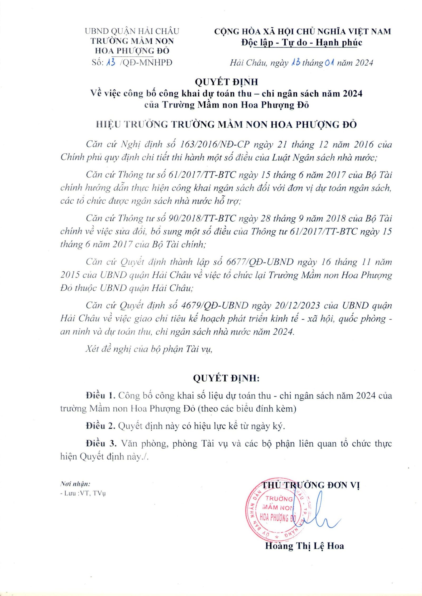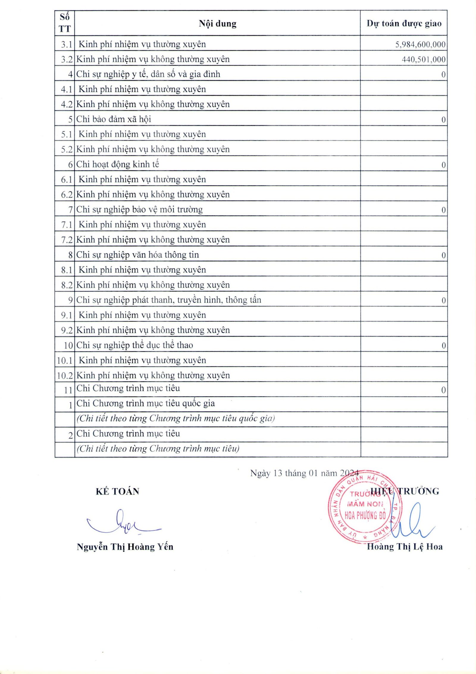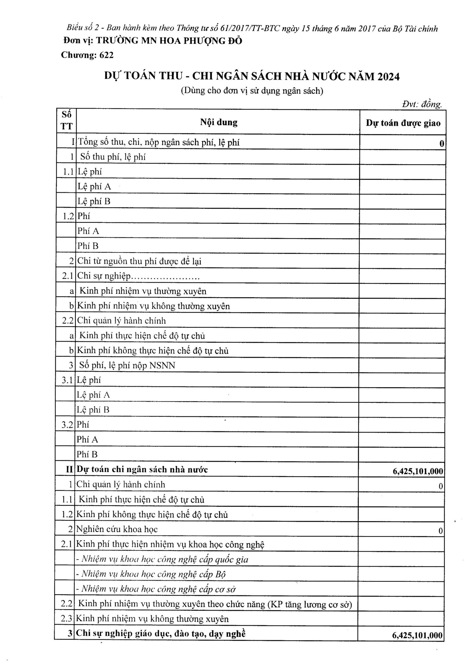 Nhà trường công khai Dự toán thu – chi ngân sách nhà nước năm 2024 cụ thể như sau: