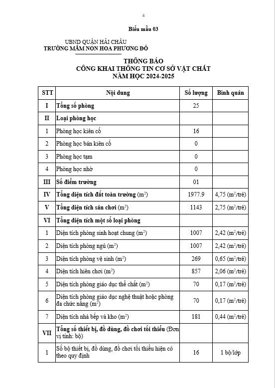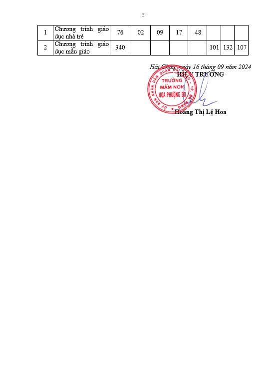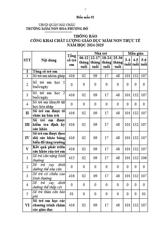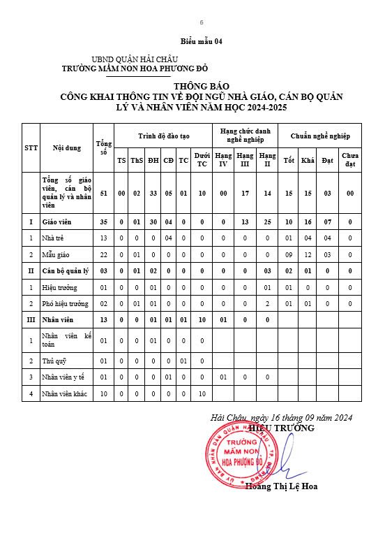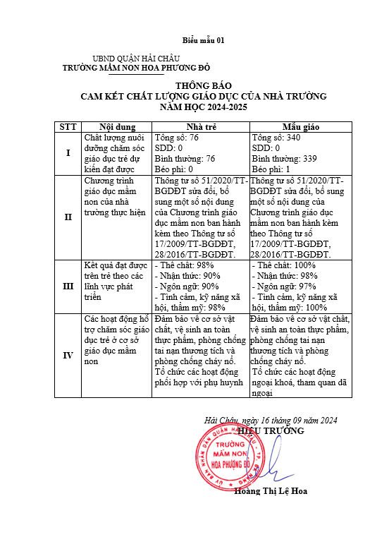 Trường Mầm non Hoa Phượng Đỏ thực hiện công khai các biểu mẫu theo quy định Thông tư số 09/2024/TT-BGDĐT năm học 2024-2025 như sau: