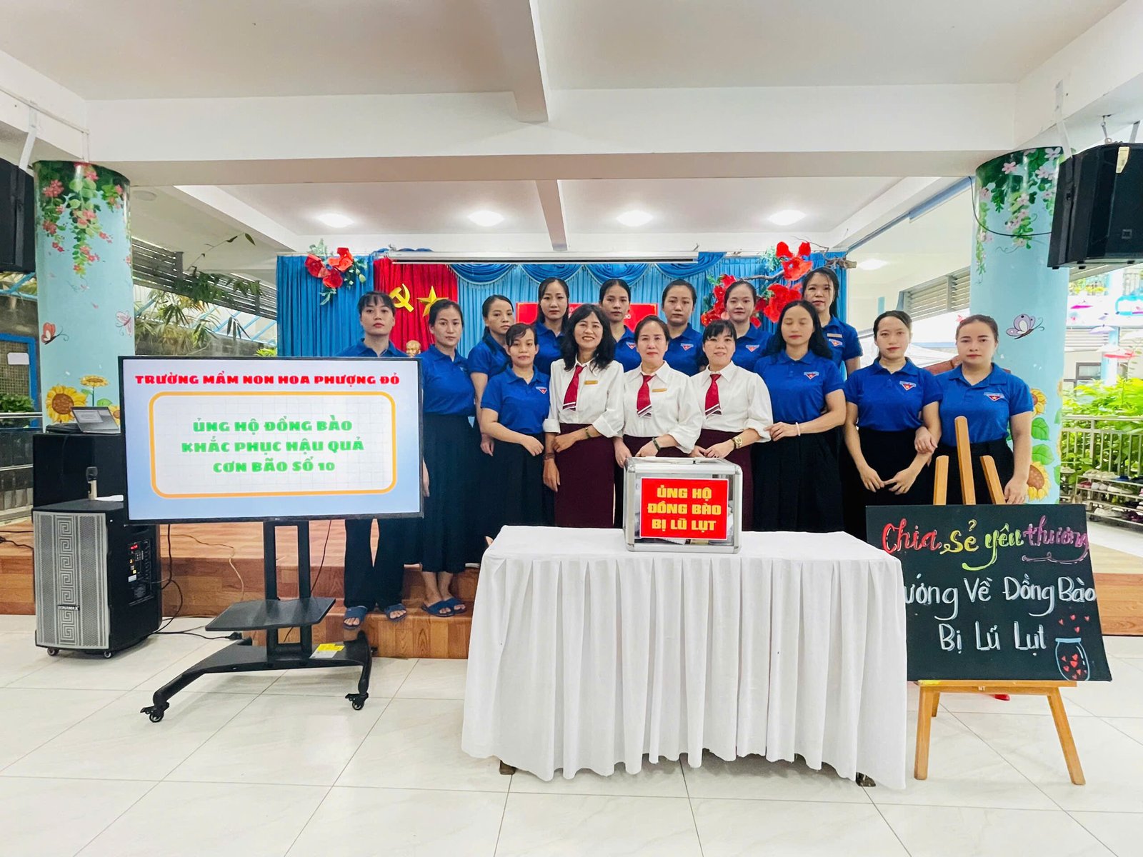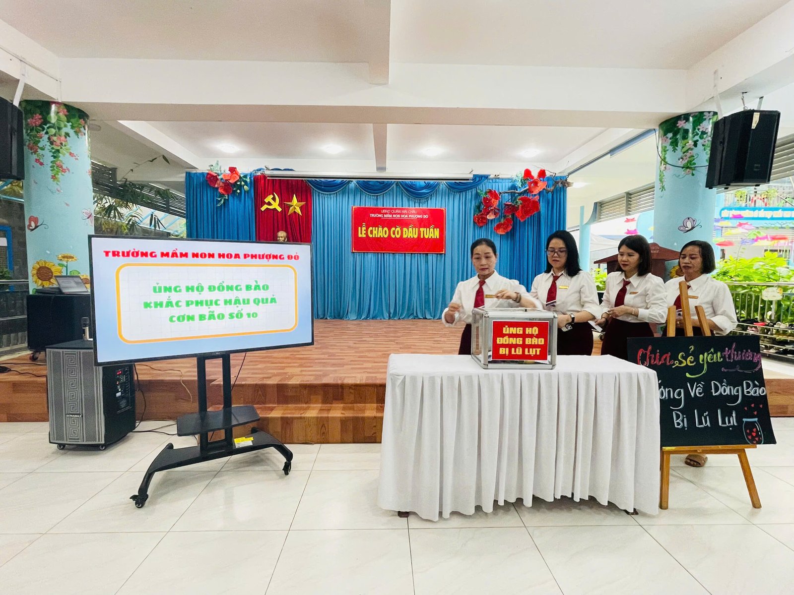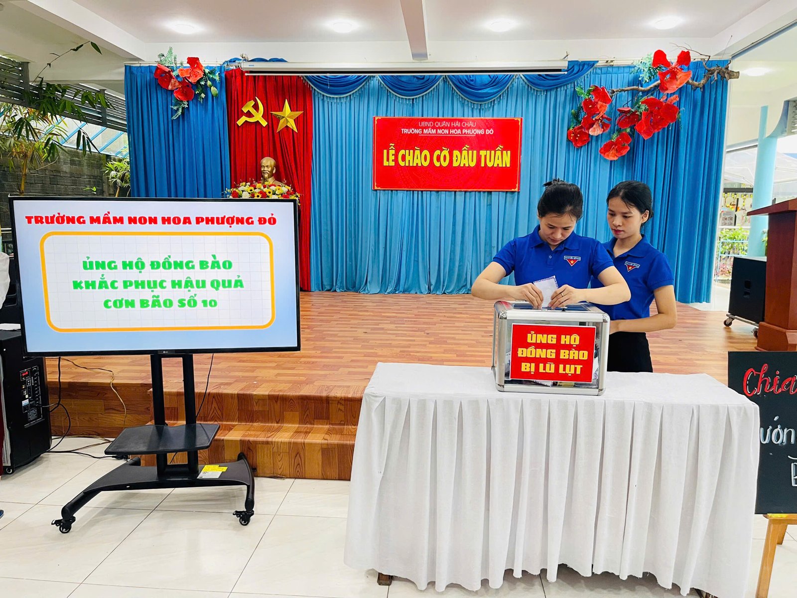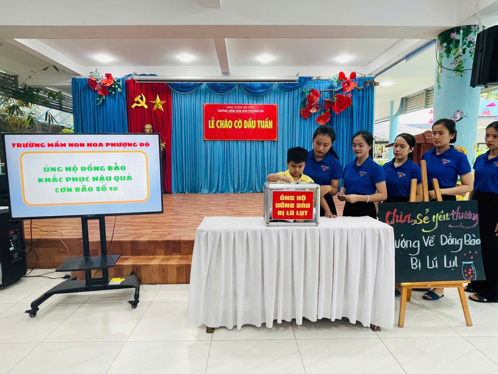 Hưởng ứng lời kêu gọi của Đoàn Chủ tịch Ủy ban Trung ương MTTQ Việt Nam, Ủy ban MTTQ Việt Nam thành phố Đà Nẵng, phát huy truyền thống đoàn kết quý báu của dân tộc ta, với tinh thần “tương thân tương ái”, “lá lành đùm lá rách”, Trường Mầm non Hoa Phượng Đỏ phát động các CBGVNV và phụ huynh học sinh cùng sẻ chia, giúp đỡ về tinh thần, vật chất, góp phần thiết thực hỗ trợ đồng bào khắc phục do hậu quả của bão lũ gây ra.