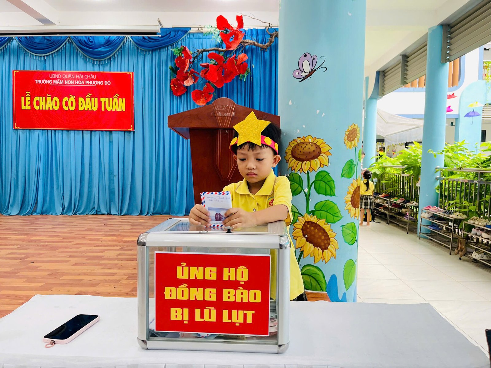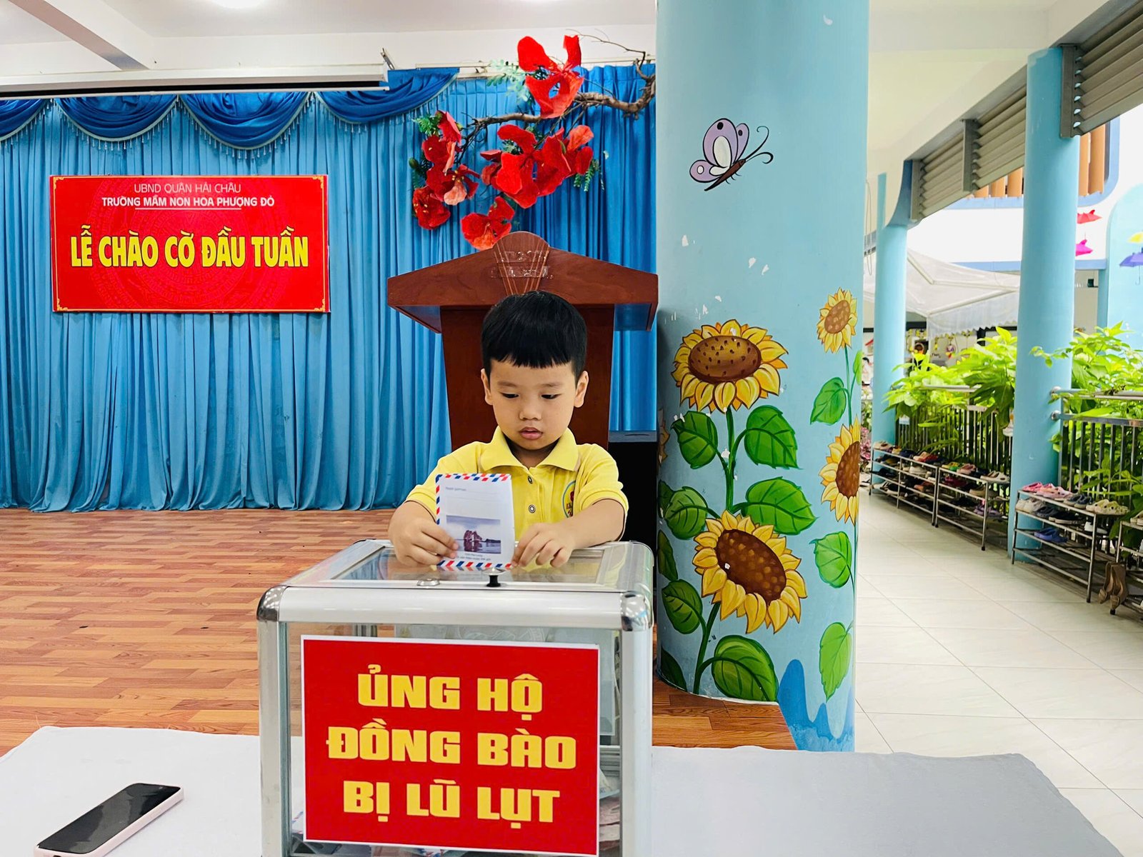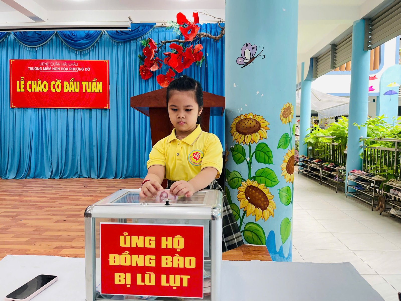Hưởng ứng lời kêu gọi của Đoàn Chủ tịch Ủy ban Trung ương MTTQ Việt Nam, Ủy ban MTTQ Việt Nam thành phố Đà Nẵng, phát huy truyền thống đoàn kết quý báu của dân tộc ta, với tinh thần “tương thân tương ái”, “lá lành đùm lá rách”, Trường Mầm non Hoa Phượng Đỏ phát động các CBGVNV và phụ huynh học sinh cùng sẻ chia, giúp đỡ về tinh thần, vật chất, góp phần thiết thực hỗ trợ đồng bào khắc phục do hậu quả của bão lũ gây ra.