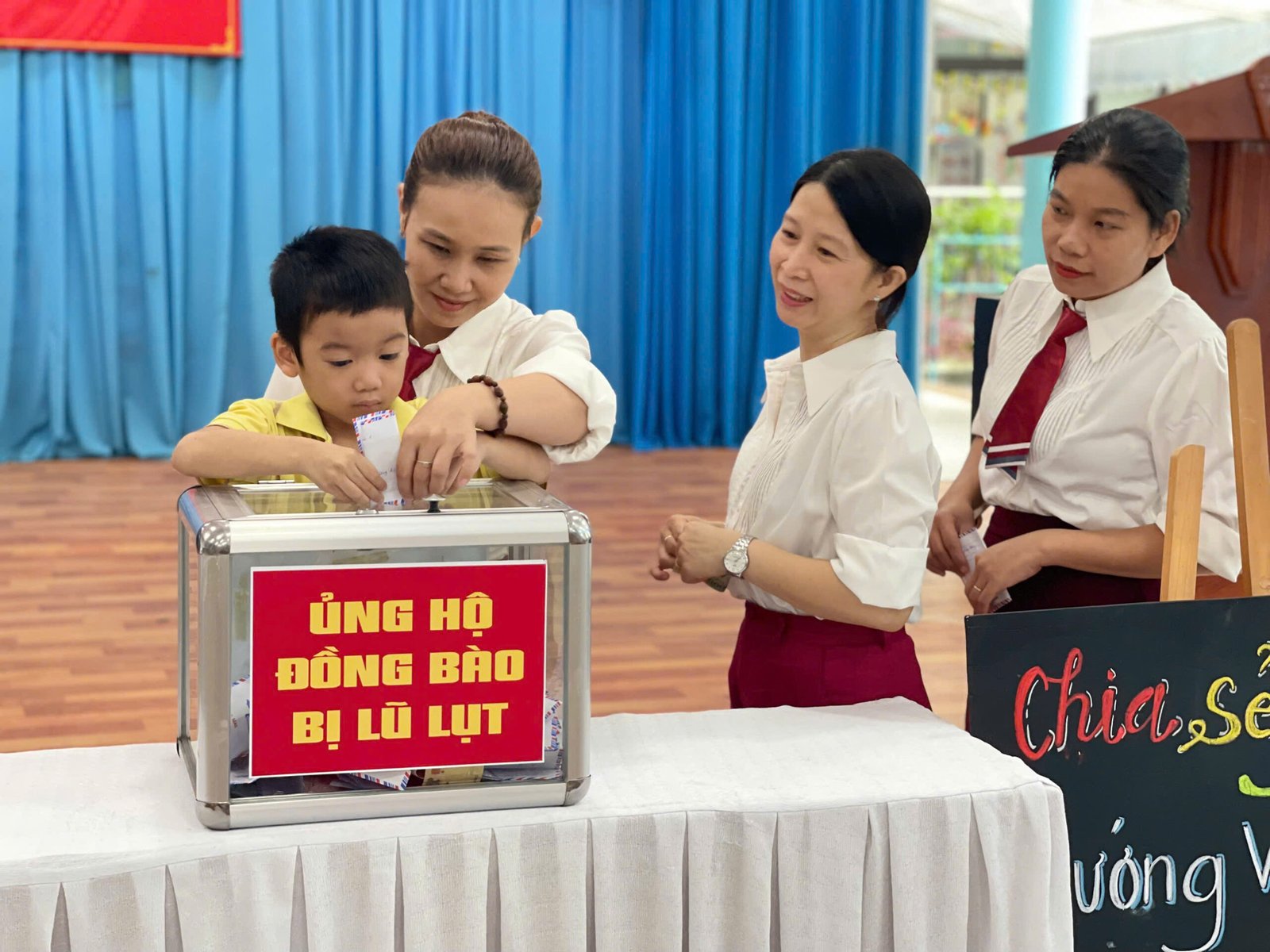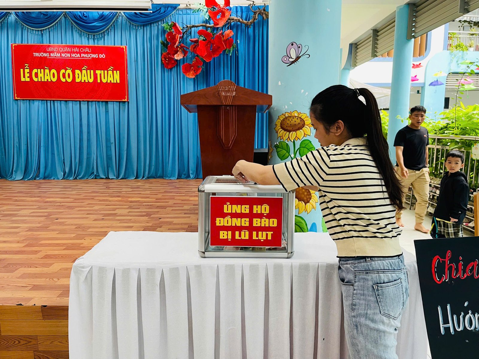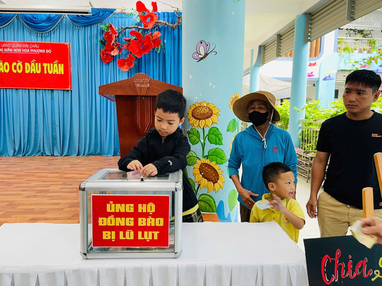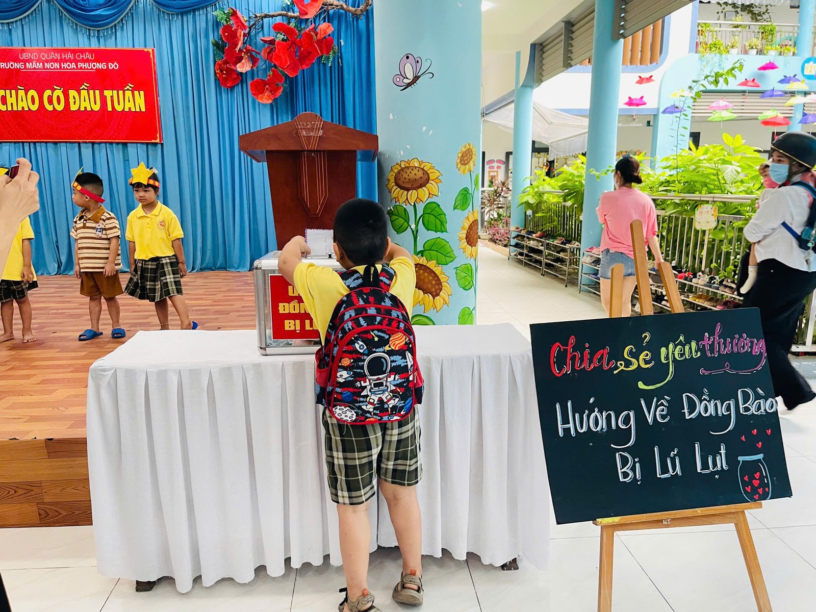 Hưởng ứng lời kêu gọi của Đoàn Chủ tịch Ủy ban Trung ương MTTQ Việt Nam, Ủy ban MTTQ Việt Nam thành phố Đà Nẵng, phát huy truyền thống đoàn kết quý báu của dân tộc ta, với tinh thần “tương thân tương ái”, “lá lành đùm lá rách”, Trường Mầm non Hoa Phượng Đỏ phát động các CBGVNV và phụ huynh học sinh cùng sẻ chia, giúp đỡ về tinh thần, vật chất, góp phần thiết thực hỗ trợ đồng bào khắc phục do hậu quả của bão lũ gây ra.