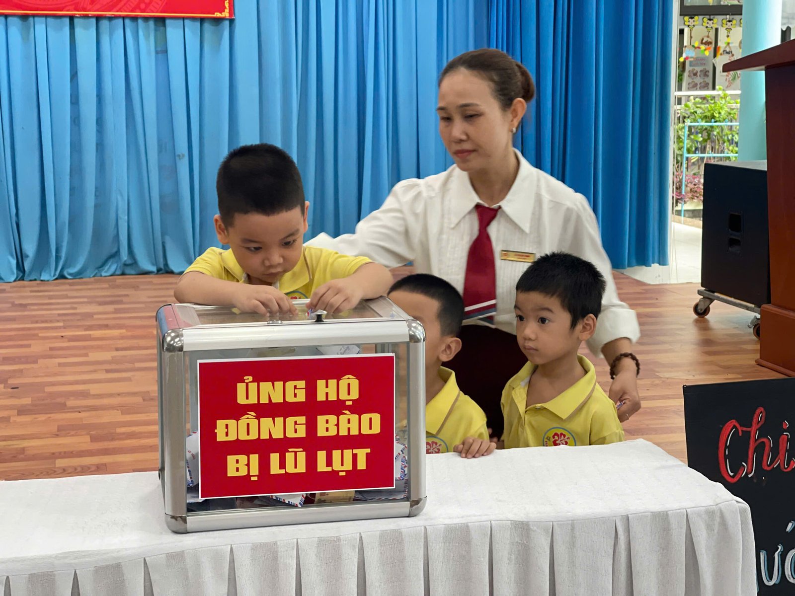 Sáng 13/10, Trường Mầm non Hoa Phượng Đỏ tổ chức phát động quyên góp, ủng hộ đồng bào các địa phương khắc phục hậu quả do bão lũ gây ra.