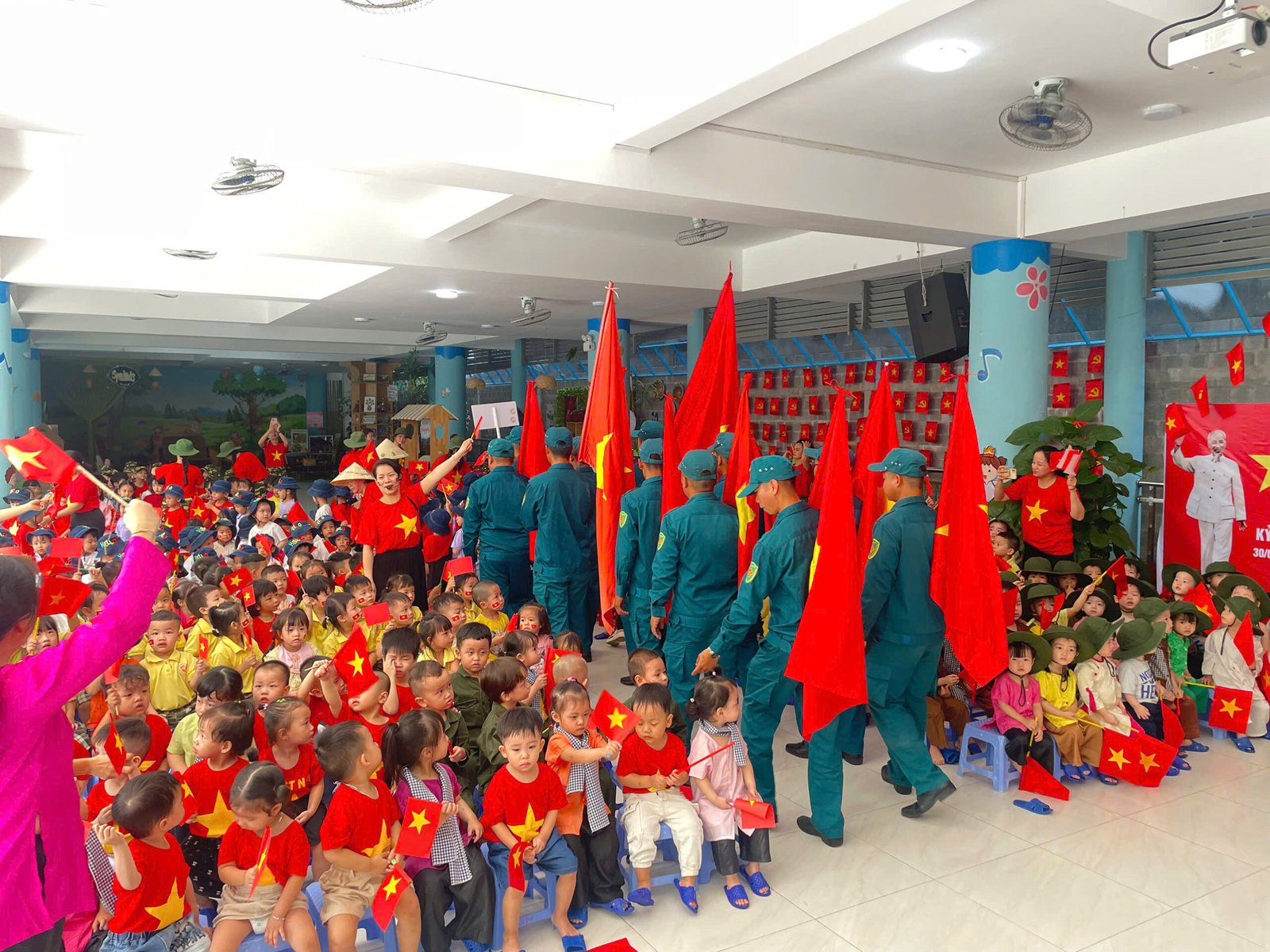 Những ngày qua, không khí kỷ niệm 50 năm Ngày giải phóng miền Nam, thống nhất đất nước đã lan tỏa khắp ngôi trường Mầm non Hoa Phượng Đỏ yêu thương. Sân trường rực rỡ cờ hoa, các mô hình được dựng công phu: mô hình xe tăng 390 thu nhỏ, các pano, tranh ảnh về ngày 30/4 lịch sử được bố trí sinh động trong lớp học. Không gian trường như biến thành một “bảo tàng sống” thu nhỏ, vừa trang nghiêm, vừa gần gũi với trẻ thơ. Với phương châm “Giáo dục lòng yêu nước từ những điều giản dị nhất”, những hoạt động được tổ chức không chỉ là sân chơi hấp dẫn, mà còn là hành trình gieo mầm lý tưởng sống, khơi dậy tình yêu quê hương đất nước trong trái tim non nớt nhưng đầy trong trẻo của các bé.