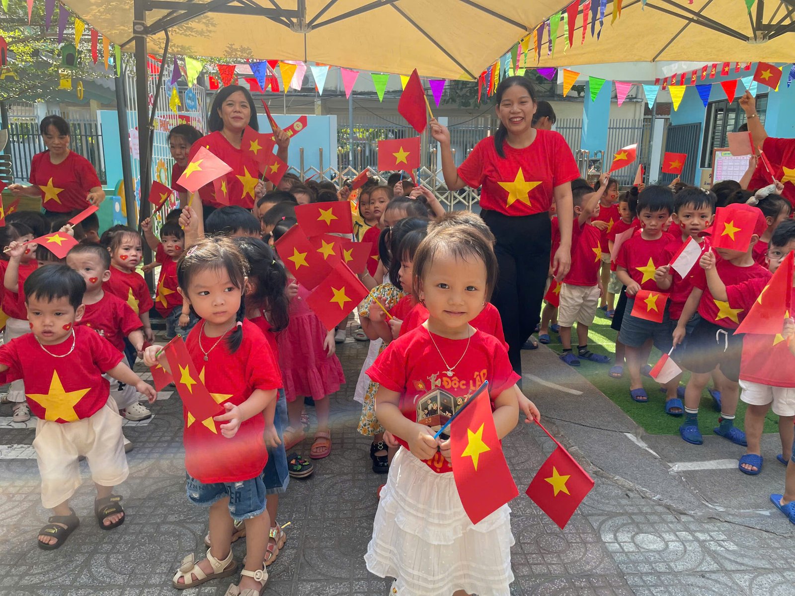 Cùng với các mô hình, Trường Mầm non Hoa Phượng Đỏ tổ chức buổi diễu binh mang tên “Tự hào là người Việt Nam”. Trong không gian ngập tràn sắc đỏ của cờ hoa, những giai điệu hào hùng vang lên từ chính tiếng hát của các bé đã khơi dậy bao xúc cảm thiêng liêng. Các bé trong trang phục áo dài, áo bà ba, bộ đội, khăn rằn đi diễu binh với nét mặt đầy tự tin và rạng rỡ khi được sống trong hòa bình, độc lập, tự do mà các thế hệ cha ông đã cực khổ giành lấy cho con cháu.