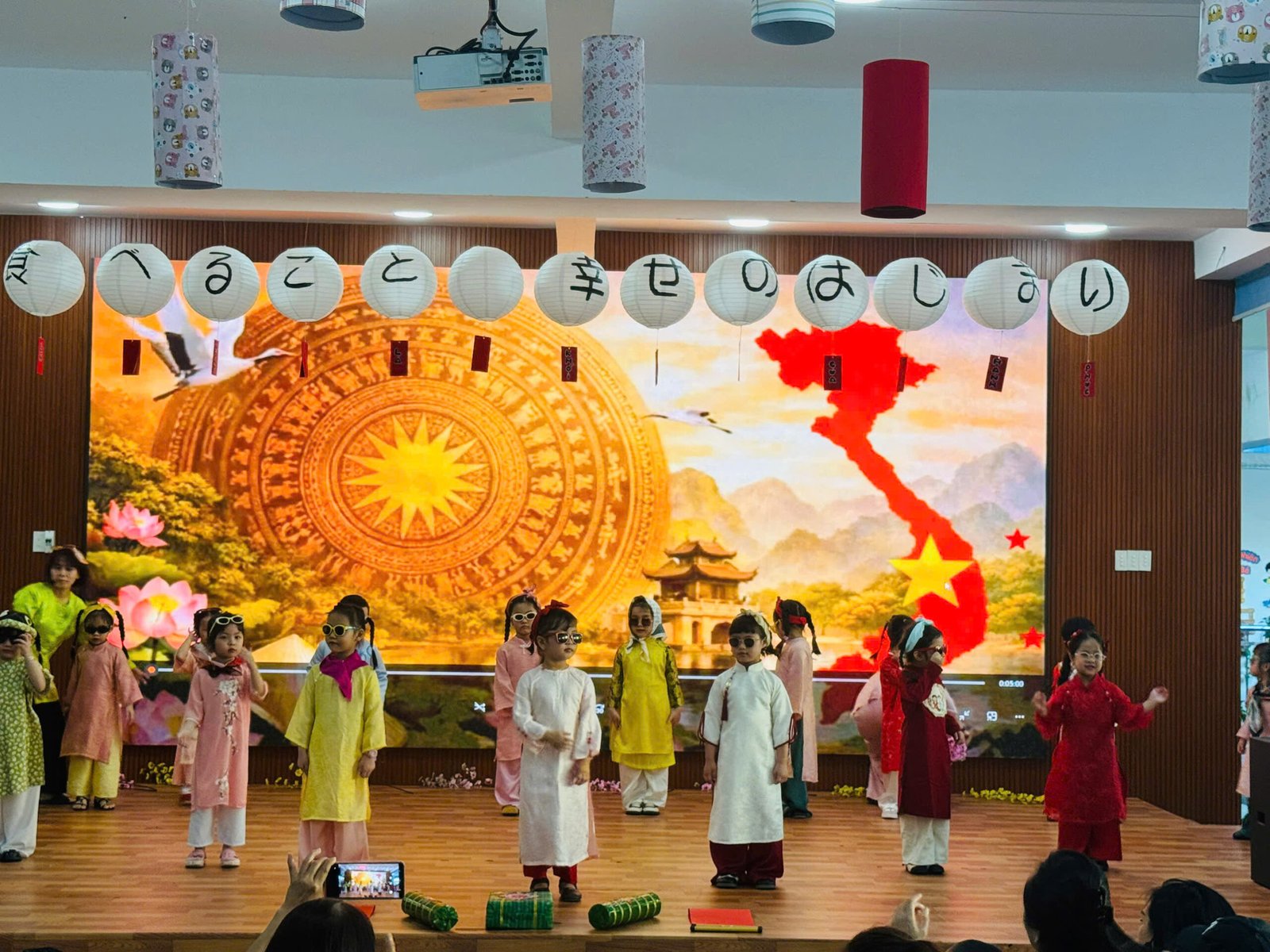 Chương trình được mở đầu với những tiết mục văn nghệ chào mừng sôi động do các học sinh thể hiện với những bài hát mừng ngày Tết mang đến không khí hân hoan, háo hức đón chờ một năm mới an khang thịnh vượng.