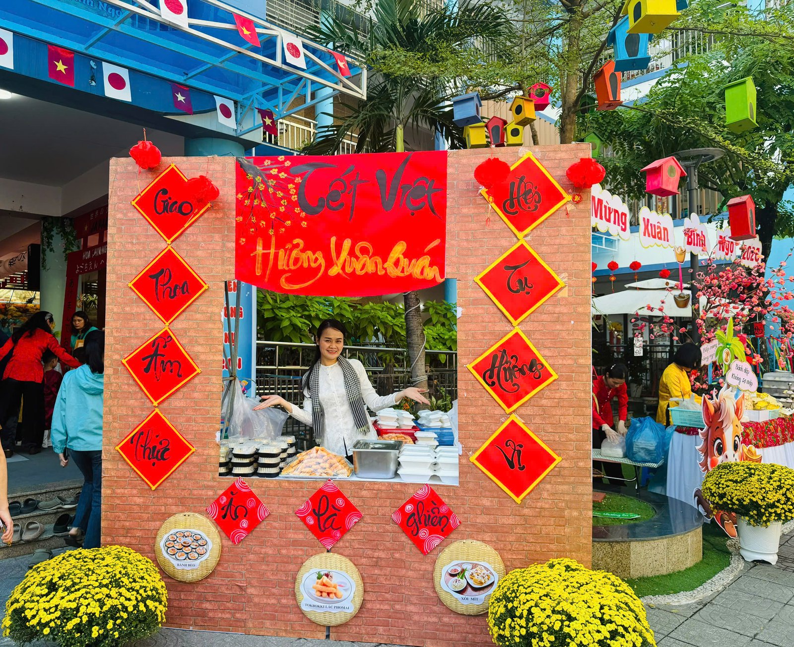 Điểm nhấn của lễ hội là các gian hàng ẩm thực. Các gian hàng đều do giáo viên và học sinh tự tay thiết kế, trang trí. Những món ăn trong thực đơn của các gian hàng cũng do giáo viên nhà trường tự tay chuẩn bị, chế biến. Món ăn phục vụ tại lễ hội rất đa dạng, hấp dẫn với các món như: