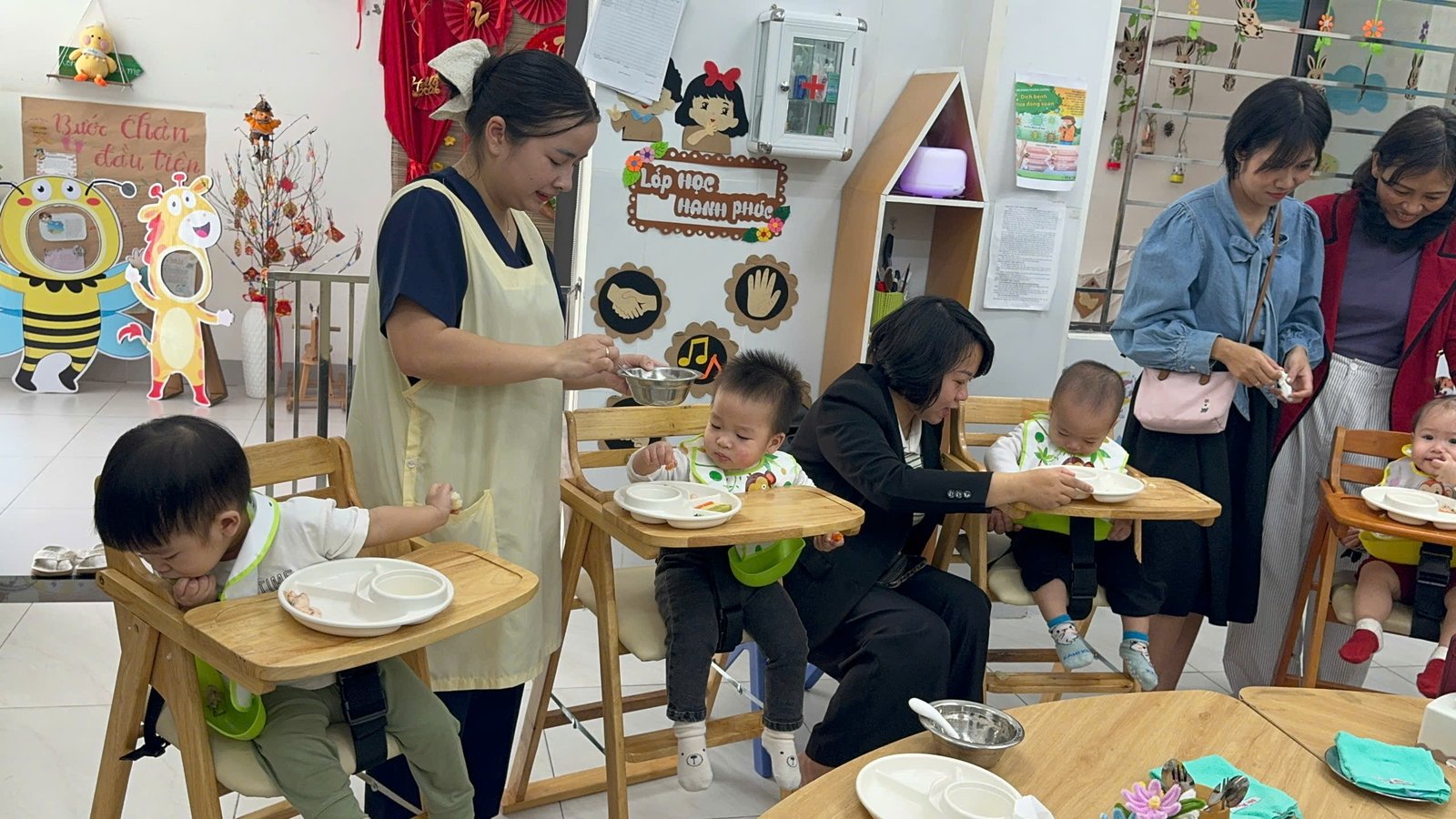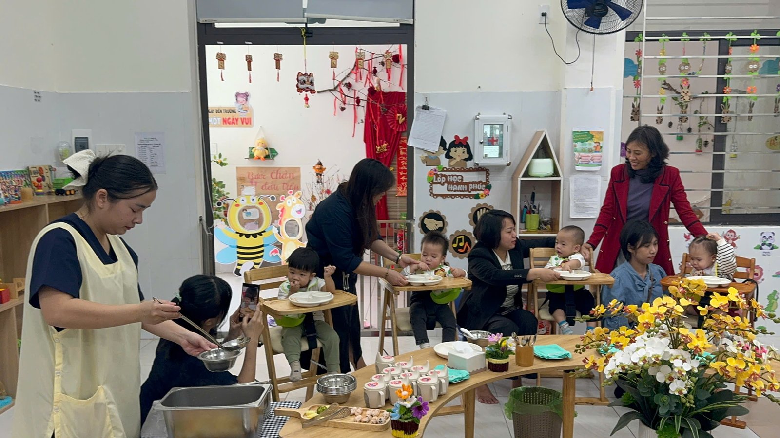 Sáng ngày 10/02, lớp Út Cưng (6-12 tháng) khối Nhà trẻ và lớp Lớn 1 (5-6 tuổi) khối Mẫu giáo trường Mầm non Hoa Phượng Đỏ rộn ràng hơn hẳn khi được đón tiếp những vị khách vô cùng đặc biệt – chính là ba mẹ của các bạn nhỏ về dự giờ hoạt động ăn của các con.