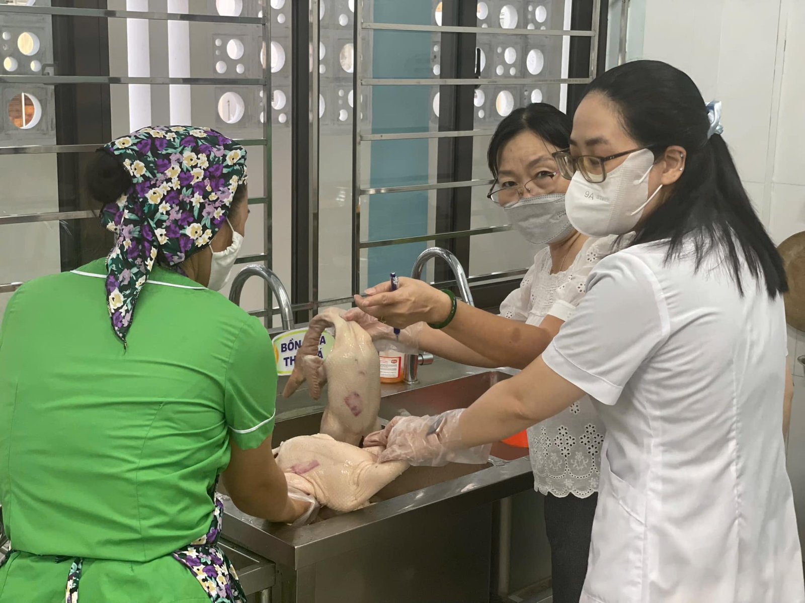 Nhà trường đã kết hợp với ban Thanh tra nhân dân và nhân viên y tế tiến hành kiểm tra đột xuất khâu giao nhận thực phẩm của công ty Ngon Sạch Bổ và quy trình chế biến của cấp dưỡng.