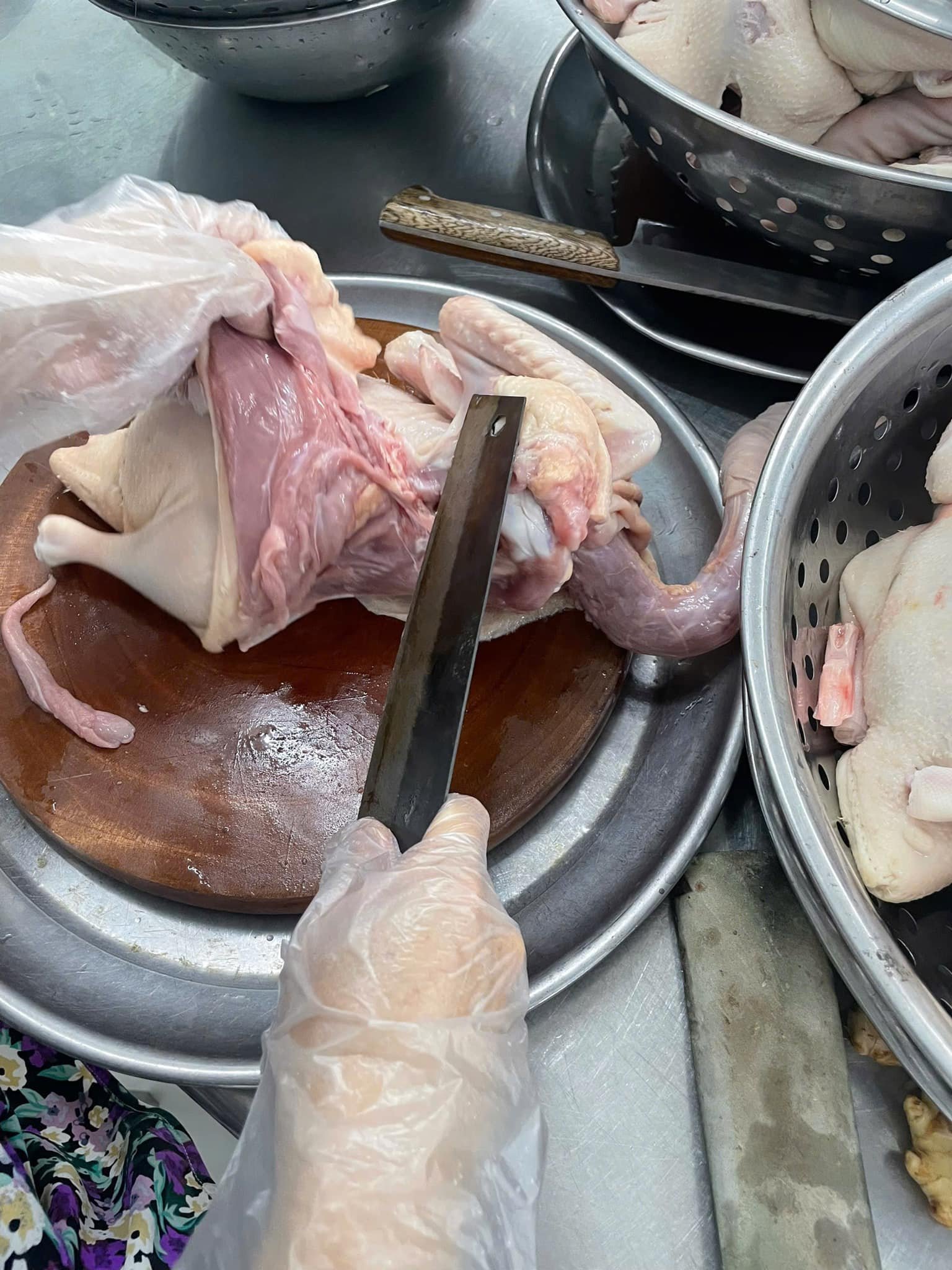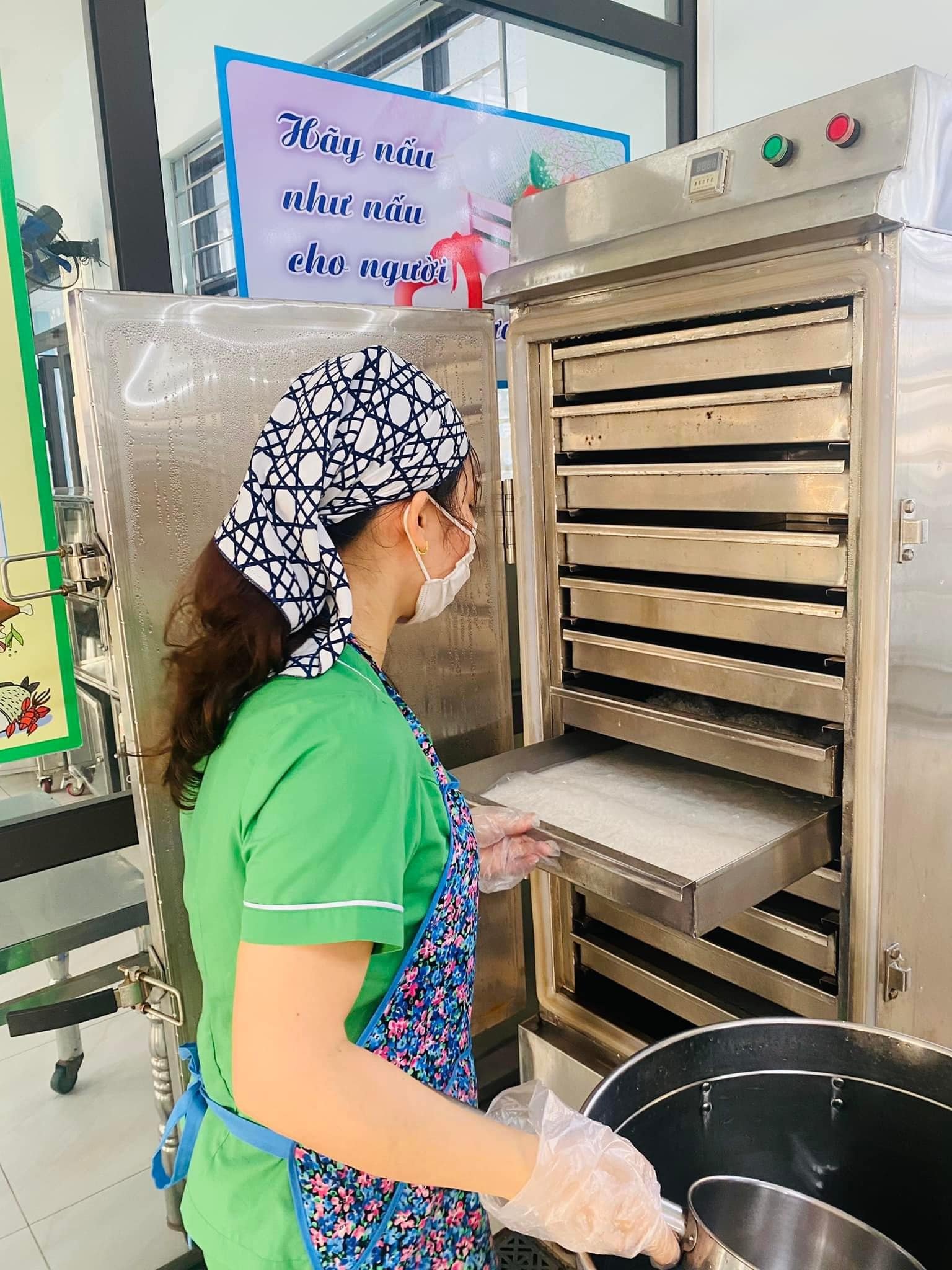 Cấp dưỡng thực hiện đúng quy trình bếp ăn 1 chiều, bảo hộ lao động và thực hiện đảm bảo ATTP trong nhà trường.