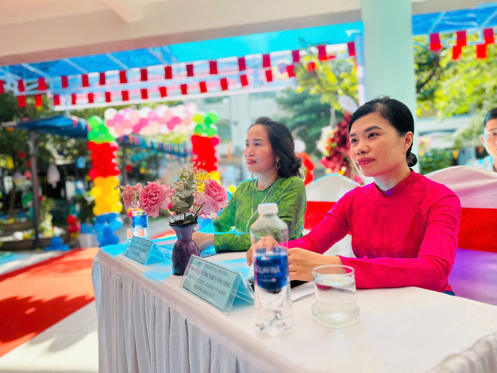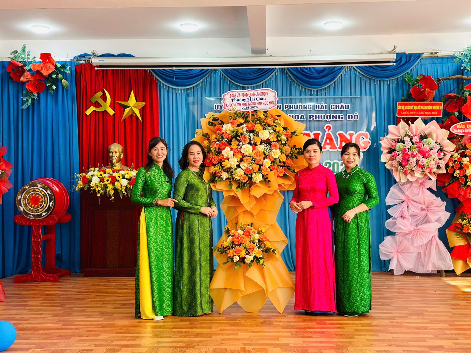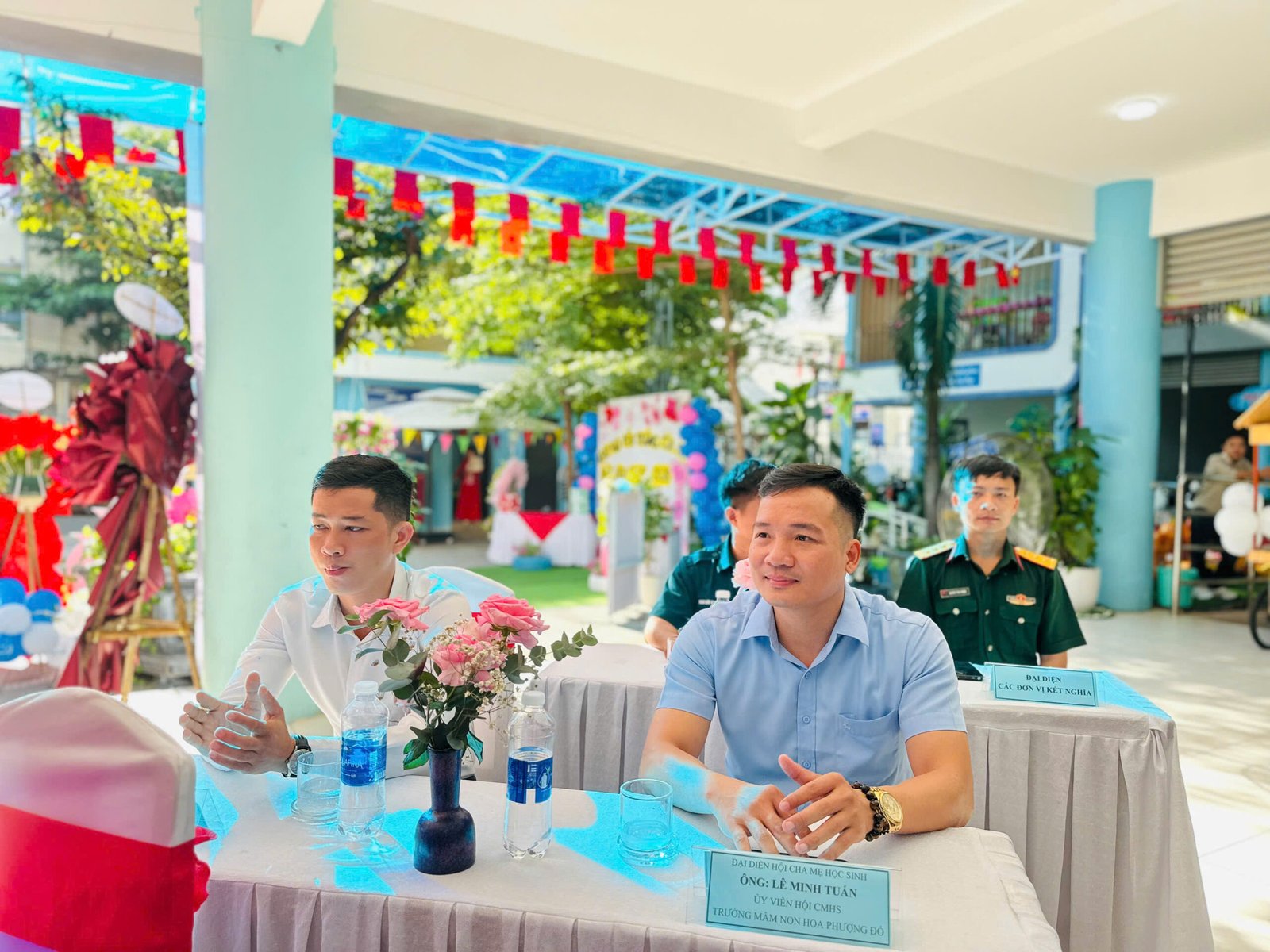 Tham dự lễ khai giảng tại nhà trường có bà Phạm Thị Thùy Phương – Đảng ủy viên – Chánh VP HĐND, UBND phường Hải Châu; bà Huỳnh Thị Mỹ Lệ – Trưởng phòng VHXH phường Hải Châu; đại diện lãnh đạo đơn vị Pháo phòng không 10; đại diện lãnh đạo đơn vị Tăng thiết giáp 699; đại diện lãnh đạo đơn vị Hải đội dân quân thường trực; ông Lê Minh Tuấn – Ủy viên Hội Cha mẹ học sinh nhà trường cùng Quý phụ huynh, học sinh và toàn thể CBGVNV nhà trường.