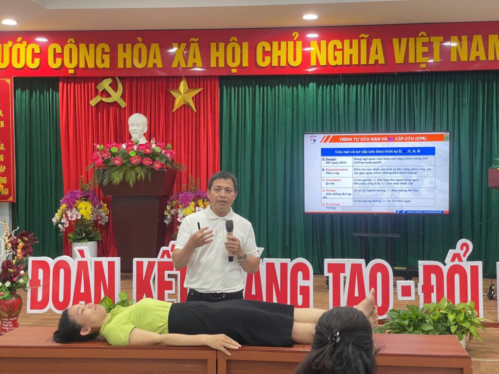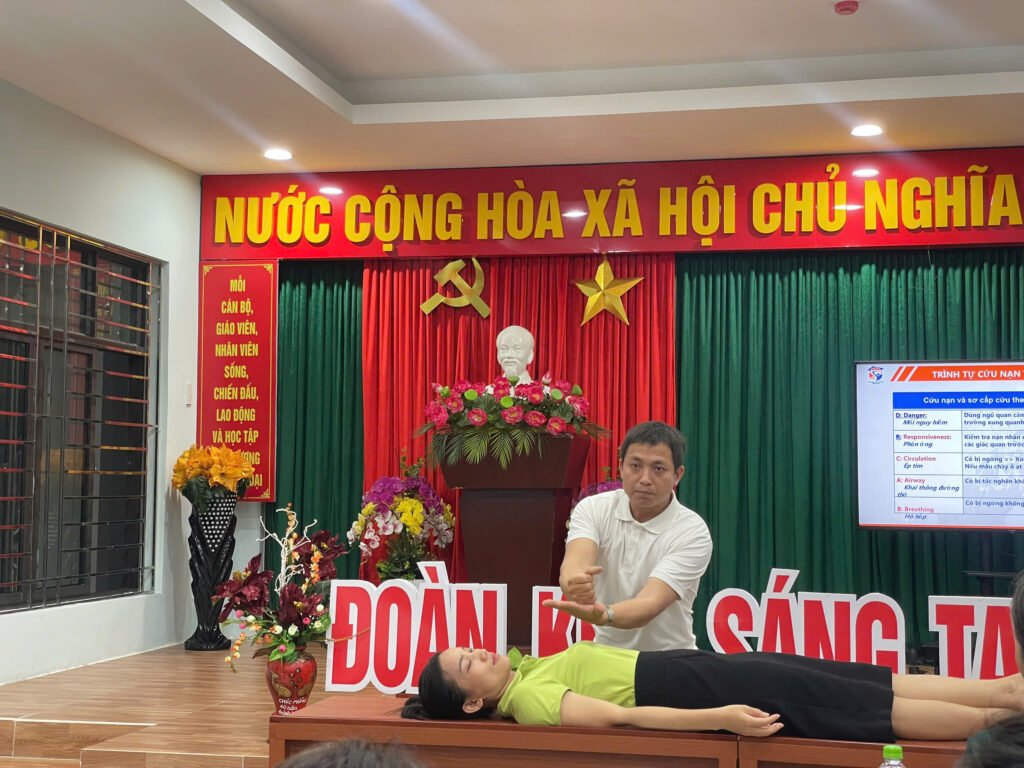 Buổi tập huấn mang đến nhiều kiến thức và kỹ năng quan trọng liên quan đến an toàn trẻ em, đặc biệt là những tình huống có thể xảy ra trong trường học và tại gia đình. CBGVNV nhà trường được trang bị các nội dung trọng tâm như: kỹ năng phòng ngừa tai nạn thương tích, kỹ năng thoát hiểm trong môi trường nguy hiểm, phòng chống đuối nước, kỹ năng sinh tồn dưới nước cũng như cách nhận diện – phòng tránh rủi ro khi trẻ tiếp xúc với môi trường nước. Điểm nhấn của chương trình là phần thực hành cứu người đuối nước, giúp giáo viên được trải nghiệm trực tiếp các thao tác cứu hộ cơ bản. Việc thực hành ngay tại buổi tập huấn giúp người tham gia ghi nhớ lâu hơn, phản ứng nhanh nhạy hơn khi gặp tình huống thực tế.