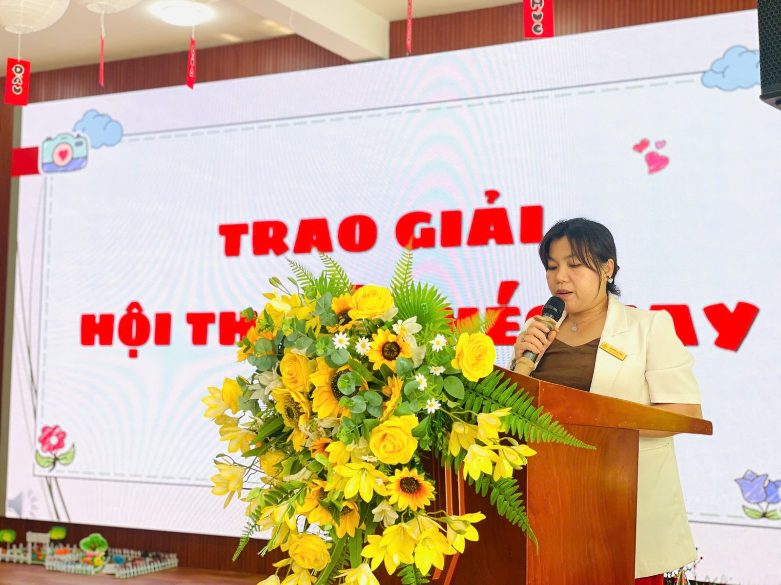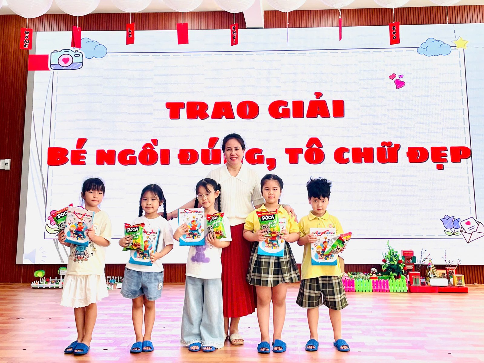 Sáng nay, 23/3/2026, Trường Mầm non Hoa Phượng Đỏ đã tổ chức thành công rực rỡ buổi lễ trao giải cho các nghệ sĩ nhí trong Hội thi “Bé ngồi đúng, tô chữ đẹp” và “Bé khéo tay” cấp trường năm học 2025 – 2026.