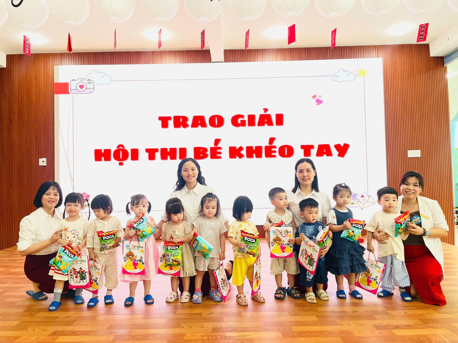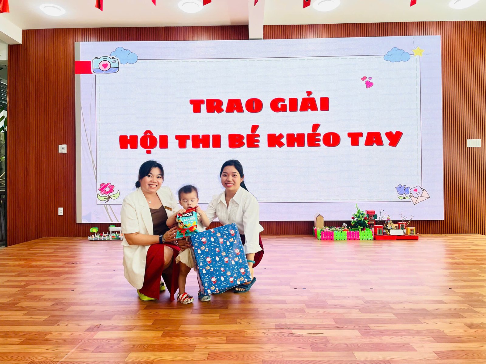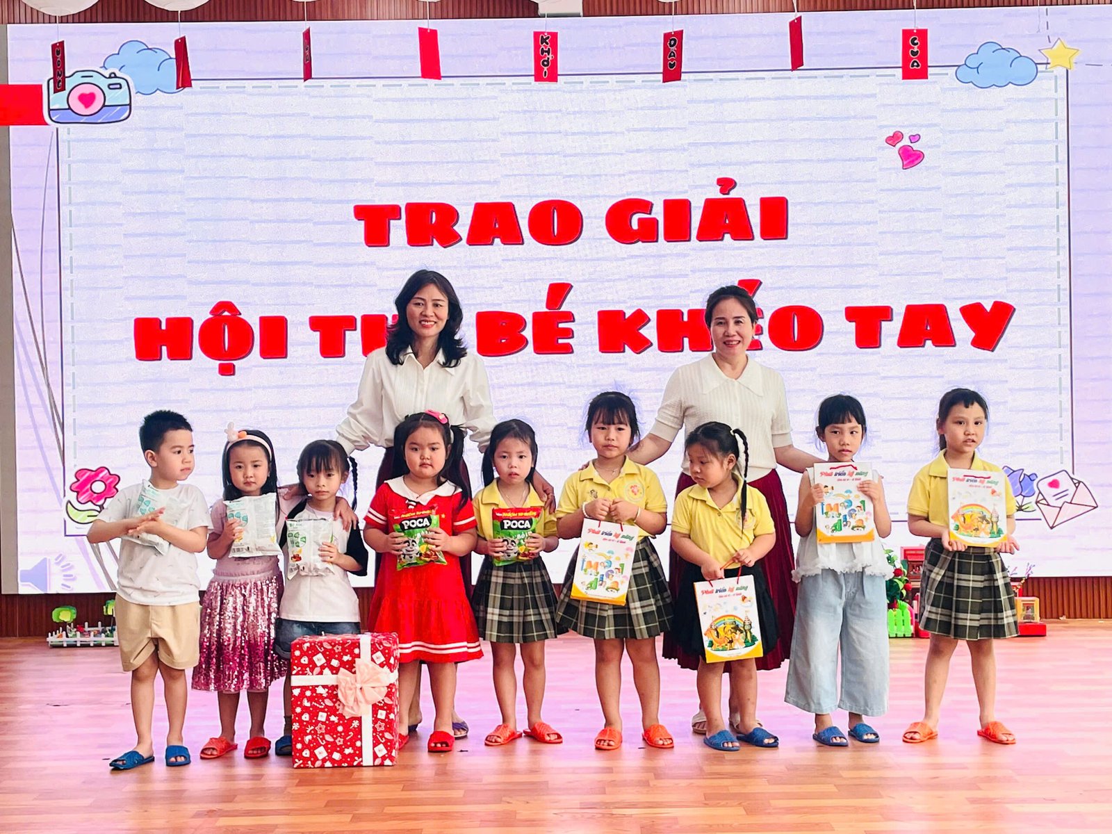 Tại buổi lễ, Ban giám hiệu và các tổ trưởng chuyên môn đại diện nhà trường đã tận tay trao tặng những phần quà ý nghĩa cho các bé đạt giải. Nhìn những gương mặt bầu bĩnh, rạng rỡ niềm vui khi cầm trên tay tập vở và những gói quà bánh nhỏ, các bậc phụ huynh và giáo viên đều cảm thấy tự hào về sự nỗ lực của các con.