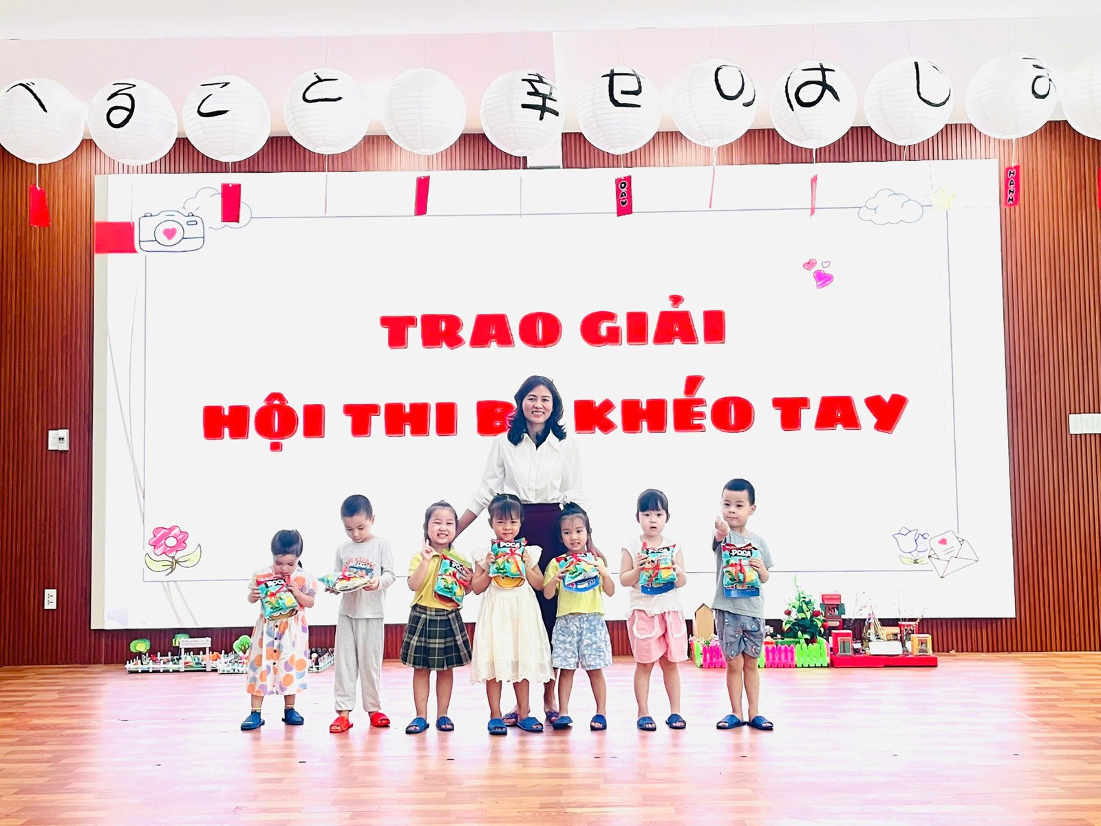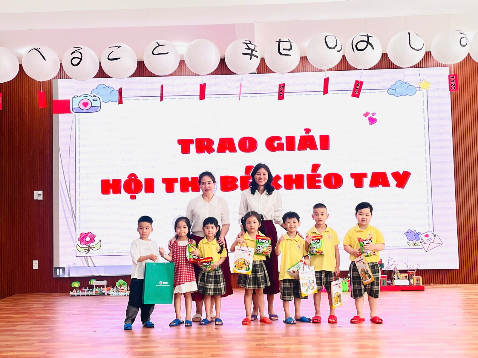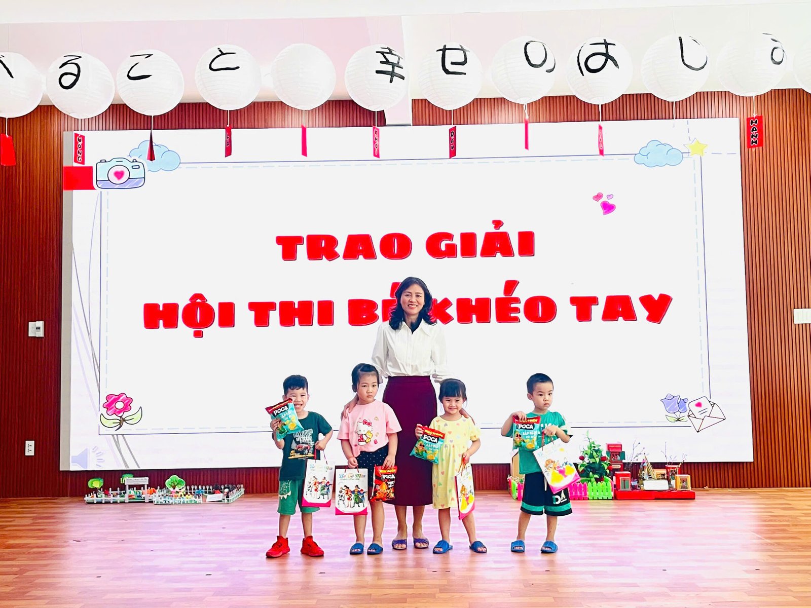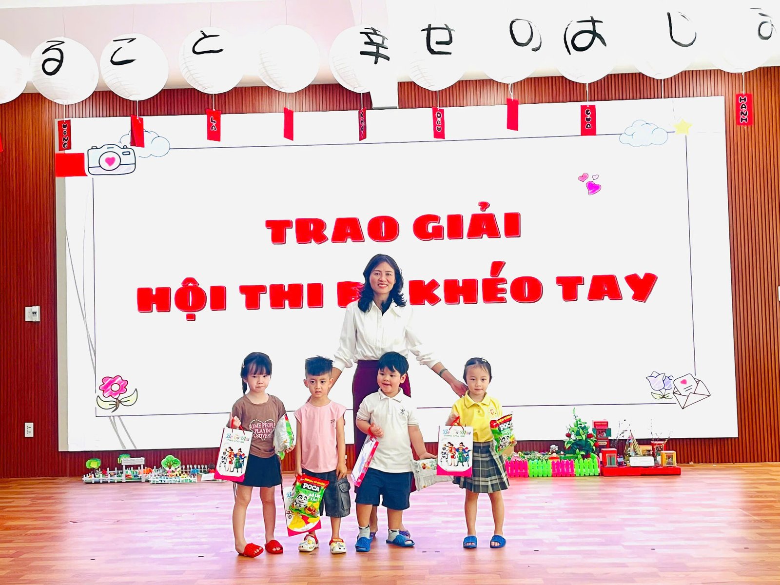 Tại buổi lễ, Ban giám hiệu và các tổ trưởng chuyên môn đại diện nhà trường đã tận tay trao tặng những phần quà ý nghĩa cho các bé đạt giải. Nhìn những gương mặt bầu bĩnh, rạng rỡ niềm vui khi cầm trên tay tập vở và những gói quà bánh nhỏ, các bậc phụ huynh và giáo viên đều cảm thấy tự hào về sự nỗ lực của các con.