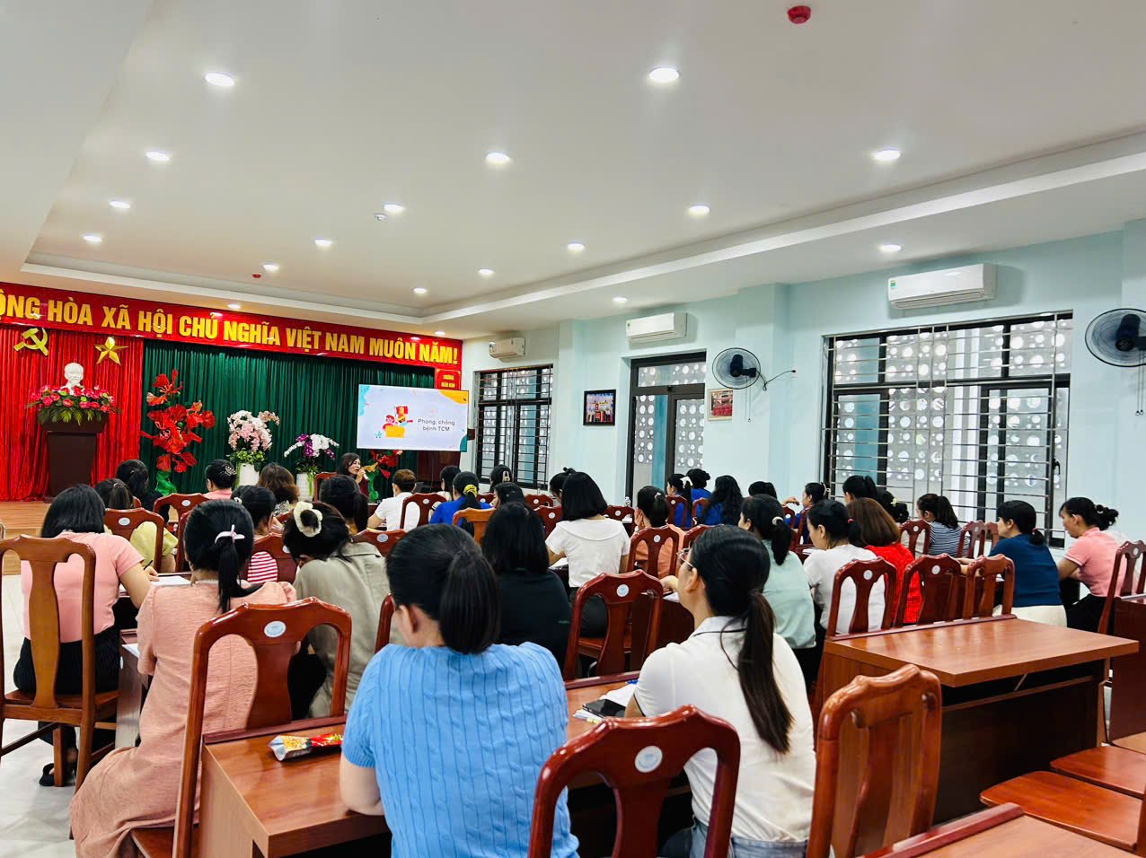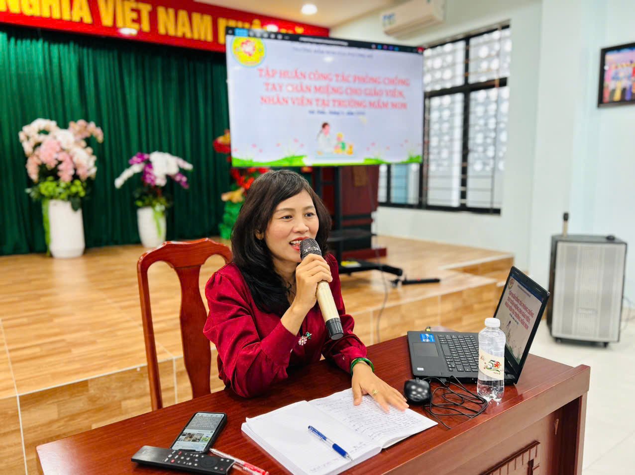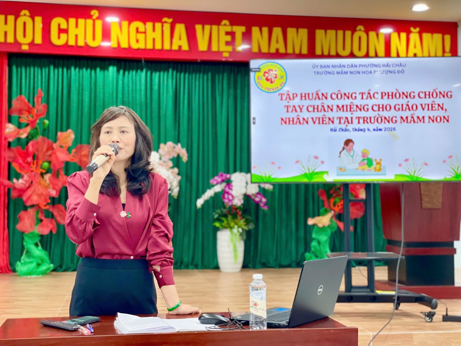 Nhằm chủ động ứng phó với diễn biến phức tạp của dịch bệnh Tay chân miệng (TCM), ngày 21/04/2026, buổi tập huấn chuyên đề về phòng chống dịch bệnh đã được trường Mầm non Hoa Phượng Đỏ tổ chức với sự tham gia đông đủ của đội ngũ cán bộ, giáo viên và nhân viên y tế học đường.
