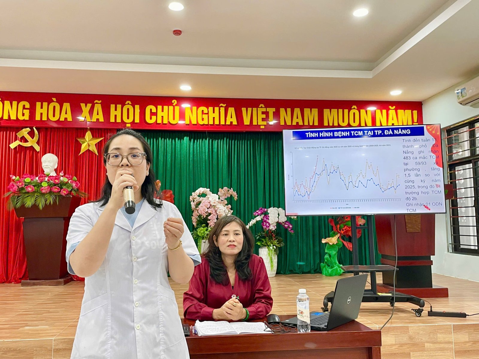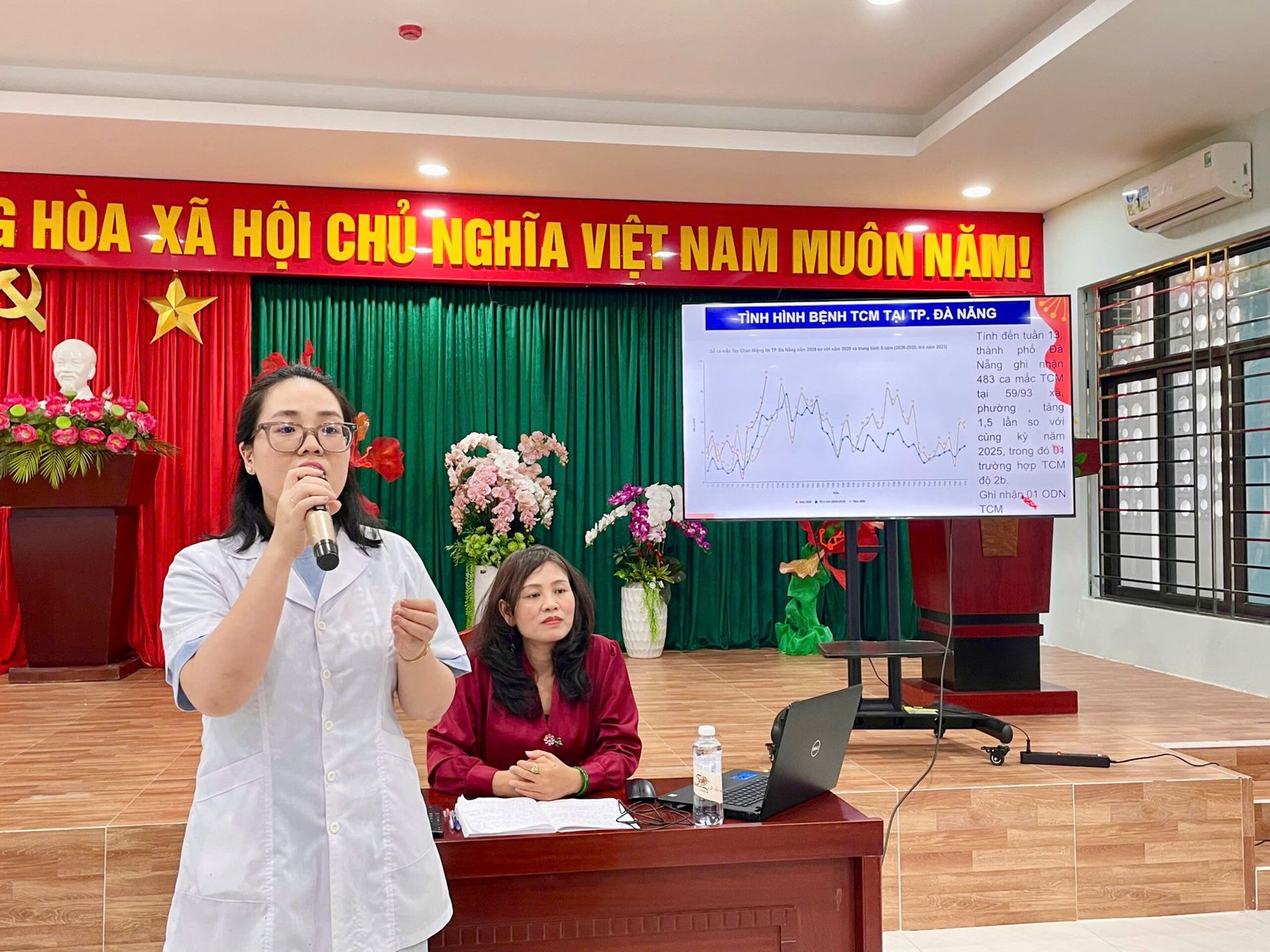 Tại buổi tập huấn, báo cáo viên y tế đã trình bày biểu đồ phân tích tình hình dịch bệnh tại TP. Đà Nẵng. Theo số liệu cập nhật đến tuần 13 năm 2026, toàn thành phố ghi nhận 483 ca mắc TCM tại 59/93 xã phường.