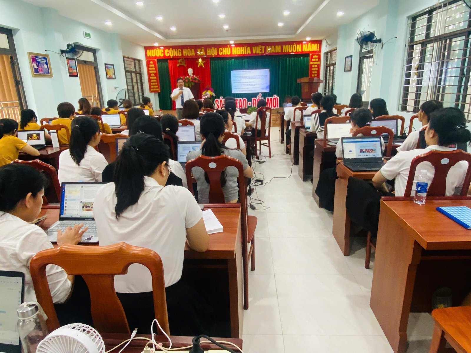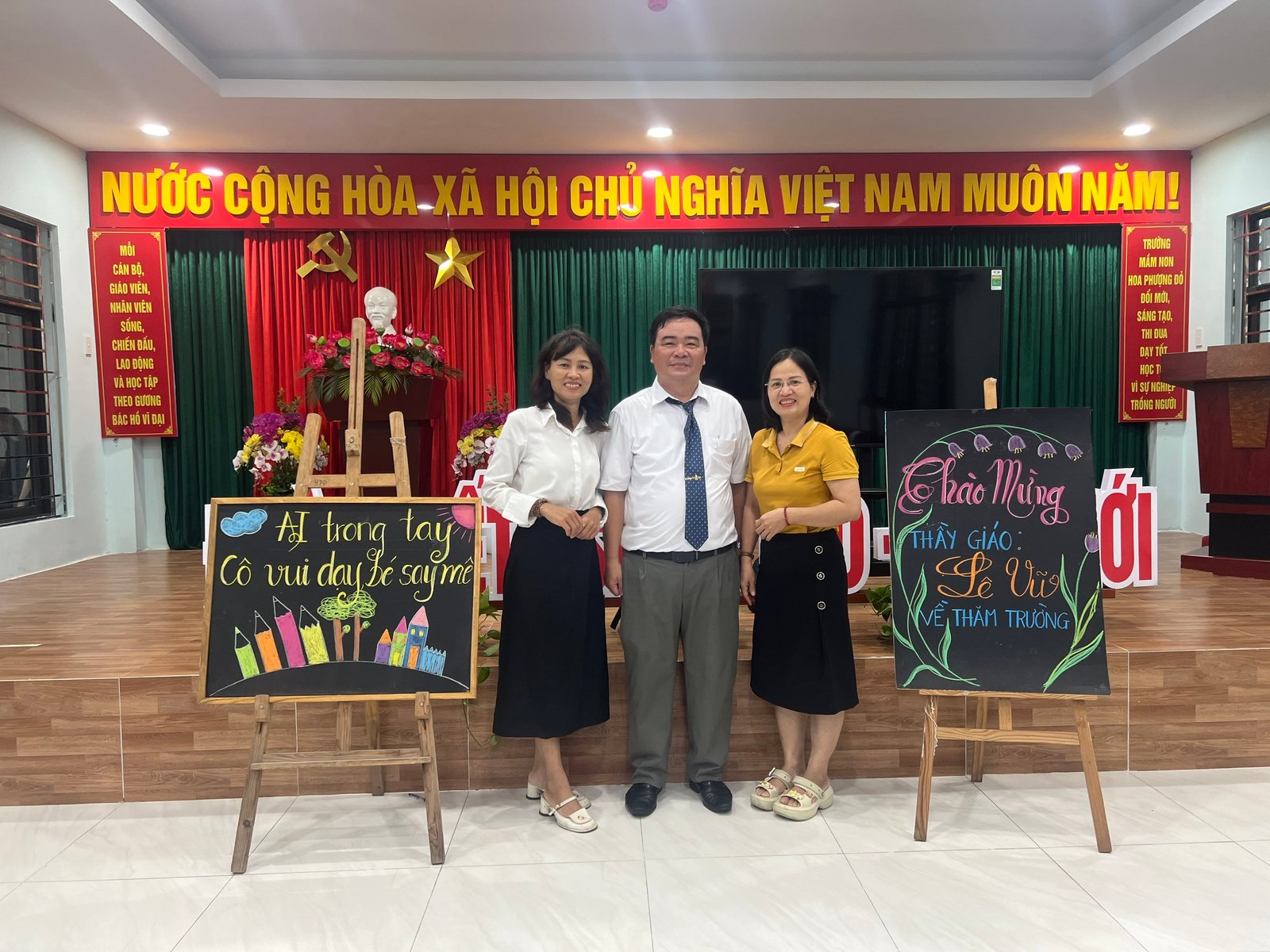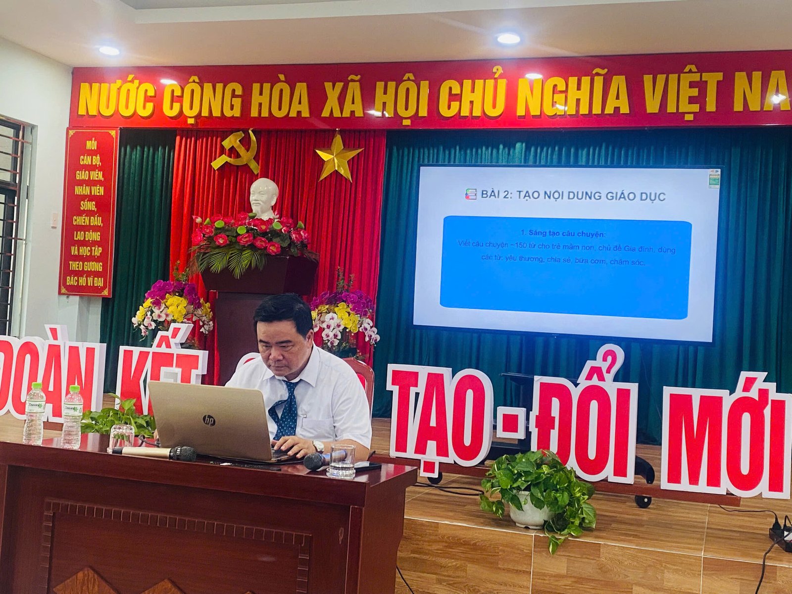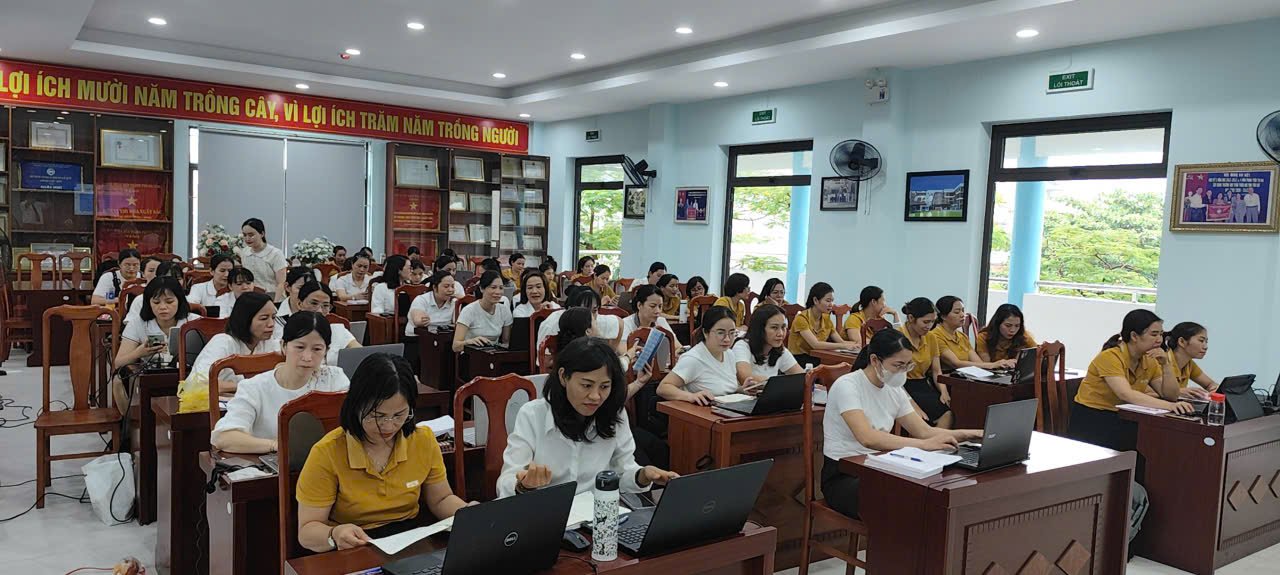 Sáng 27/9/2025 Trường Mầm non Hoa Phượng Đỏ phối hợp cùng Trường Mầm non Măng Non đã mời thầy – ThS Lê Vũ (Giám đốc Trung tâm Học liệu và Truyền thông, Trường đại học Sư phạm kỹ thuật – Đại học Đà Nẵng) về tập huấn AI cho cán bộ giáo viên nhà trường nhằm nâng cao năng lực ứng dụng trí tuệ nhân tạo vào công tác quản lý, giảng dạy và chăm sóc trẻ, giúp giáo viên soạn giáo án, thiết kế học liệu số hiệu quả, tiết kiệm thời gian và đổi mới phương pháp. Các nội dung thường tập trung vào giới thiệu về AI, vai trò và tiềm năng ứng dụng, cùng với việc thực hành sử dụng các công cụ AI như ChatGPT, Gamma, Canva để tạo nội dung giáo dục.