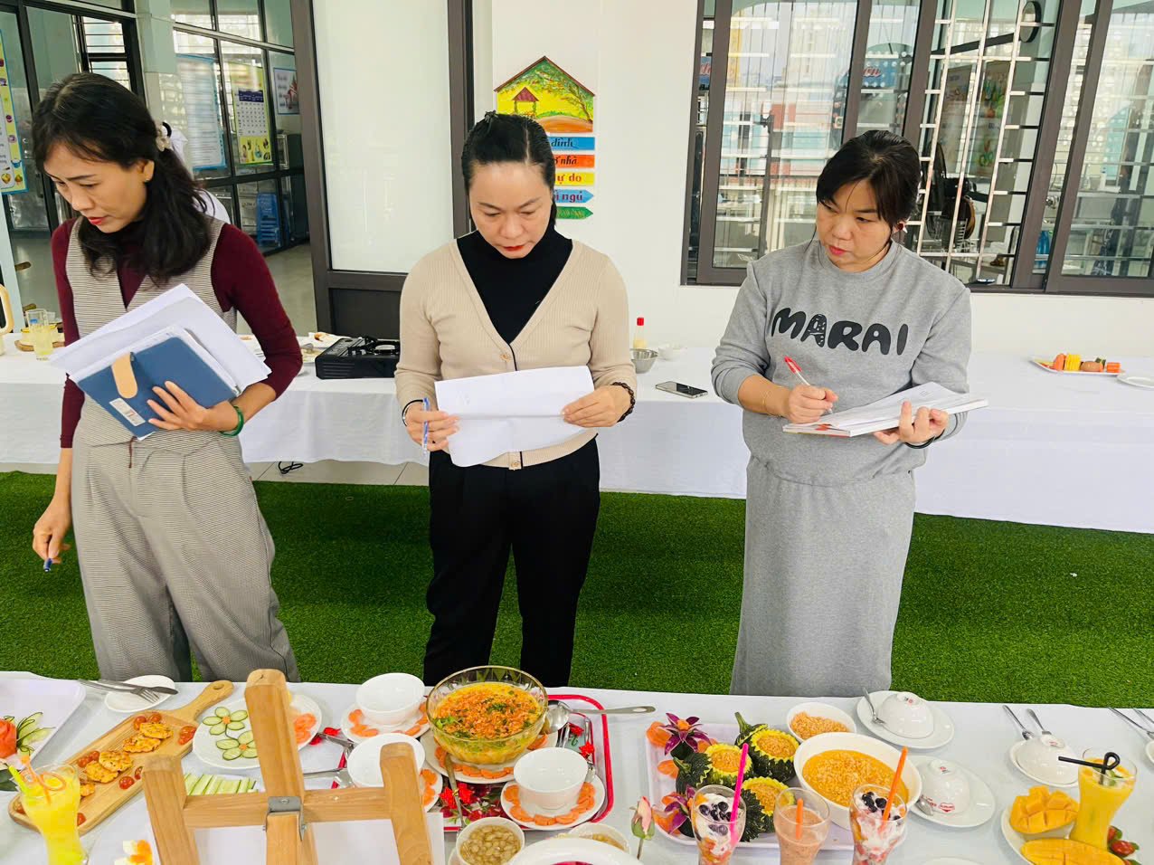 Ban giám khảo đã làm việc nghiêm túc và đưa ra những nhận xét cụ thể để động viên những sản phẩm tiêu biểu của từng cô nuôi và những mặt còn hạn chế cần điều chỉnh, để các cô nuôi vận dụng linh hoạt hơn trong quá trình xây dựng thực đơn, lựa chọn thực phẩm tươi ngon để chế biến món ăn cho trẻ hàng ngày.