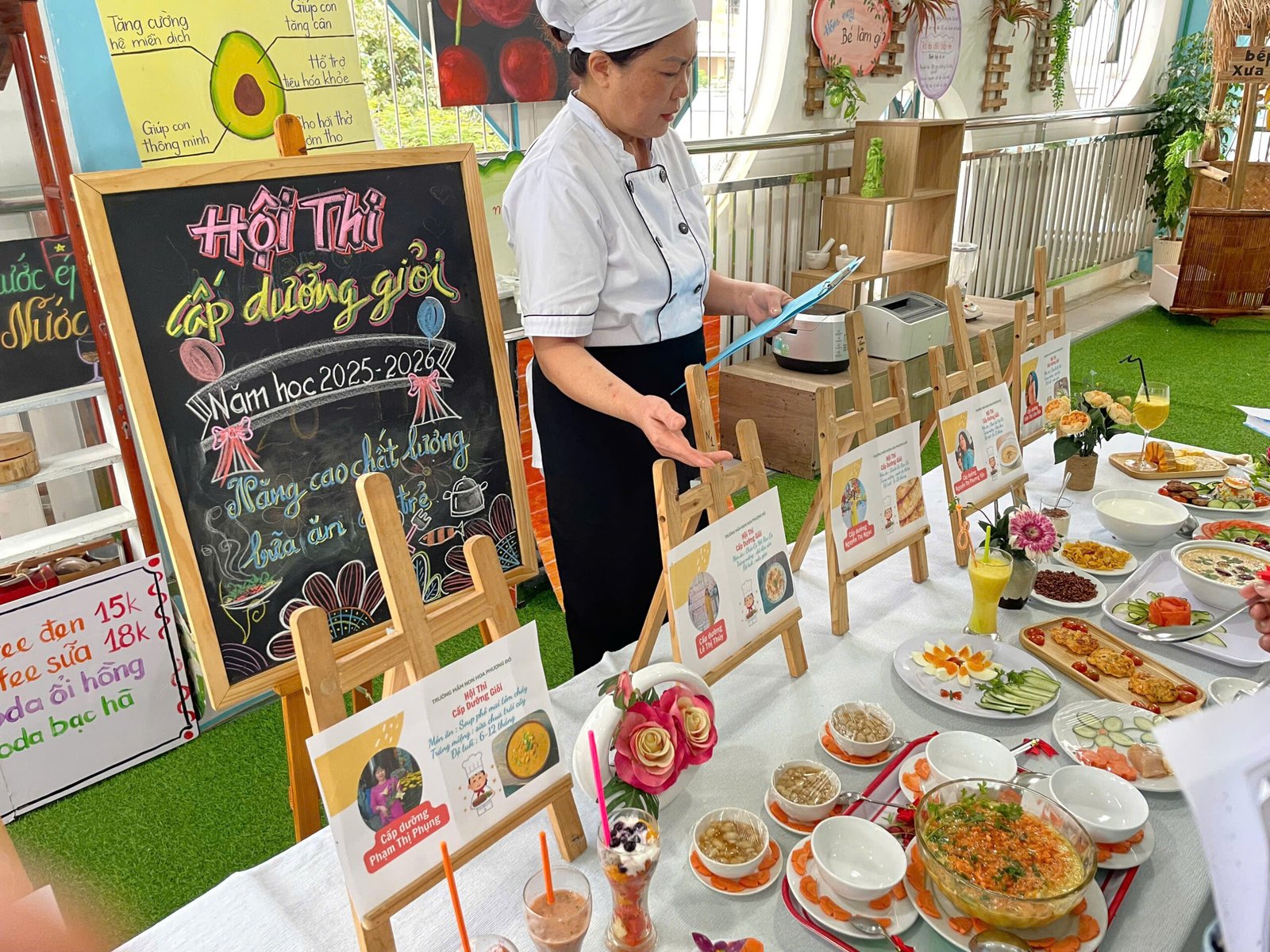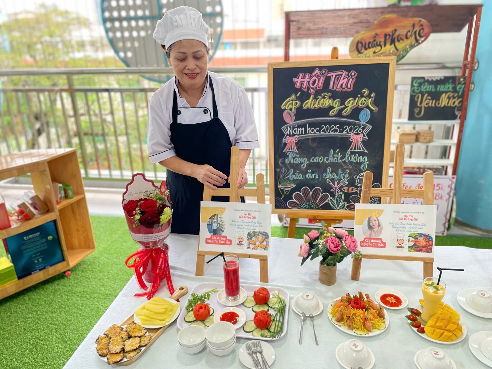 Thực hiện Kế hoạch nhiệm vụ năm học 2025-2026; Kế hoạch số 59/KH-MNHPĐ ngày 03/10/2025 của trường Mầm non Hoa Phượng Đỏ về việc triển khai công tác nuôi dưỡng và bán trú năm học 2025 – 2026. Chiều ngày 26/11/2025, trường Mầm non Hoa Phượng Đỏ đã diễn ra phần thi thực hành của nhân viên cấp dưỡng trong khuôn khổ Hội thi Cấp dưỡng giỏi, cấp trường năm học 2025-2026.