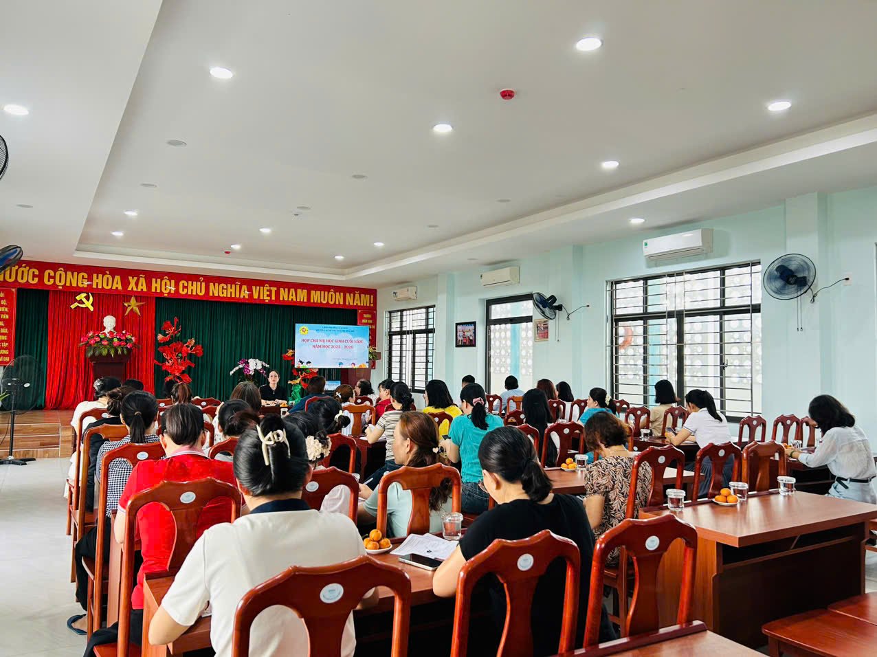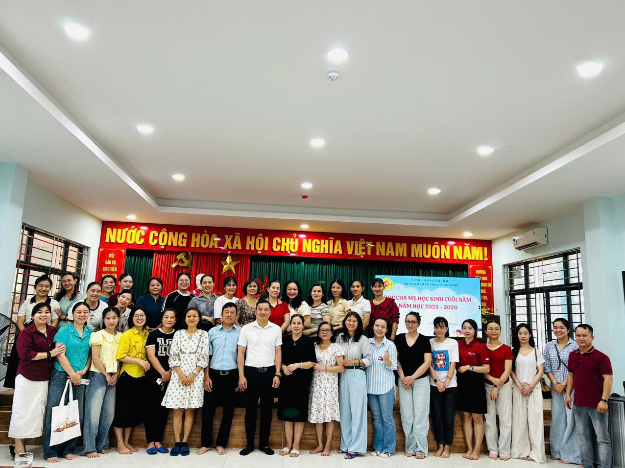 Buổi họp có sự tham dự đầy đủ của Ban Giám hiệu nhà trường, các cô giáo chủ nhiệm cùng đại diện phụ huynh đến từ các lớp. Đây không chỉ là dịp để nhà trường báo cáo những thành quả đã đạt được trong năm học vừa qua, mà còn là cơ hội để gia đình và nhà trường cùng ngồi lại, nhìn lại hành trình khôn lớn của các bé.