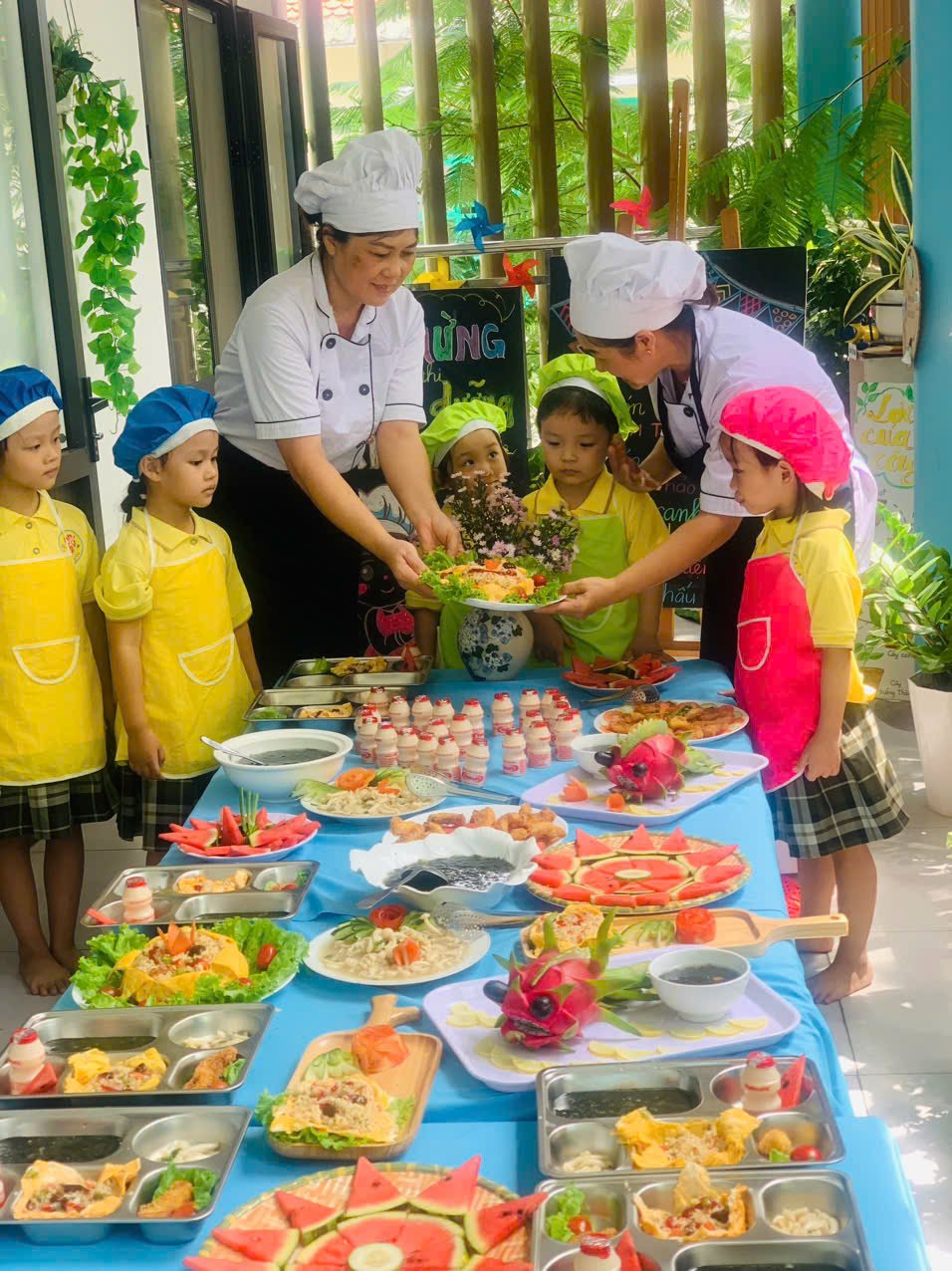 Nhằm tạo sân chơi để đội ngũ cô cấp dưỡng có điều kiện giao lưu, học hỏi và chia sẻ kinh nghiệm trong việc tổ chức khâu nuôi trong nhà trường. Trường Mầm non Hoa Phượng Đỏ đã tổ chức chuỗi hoạt động “Nâng cao tay nghề cô cấp dưỡng”.