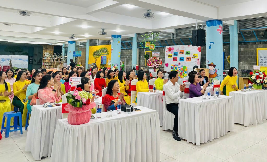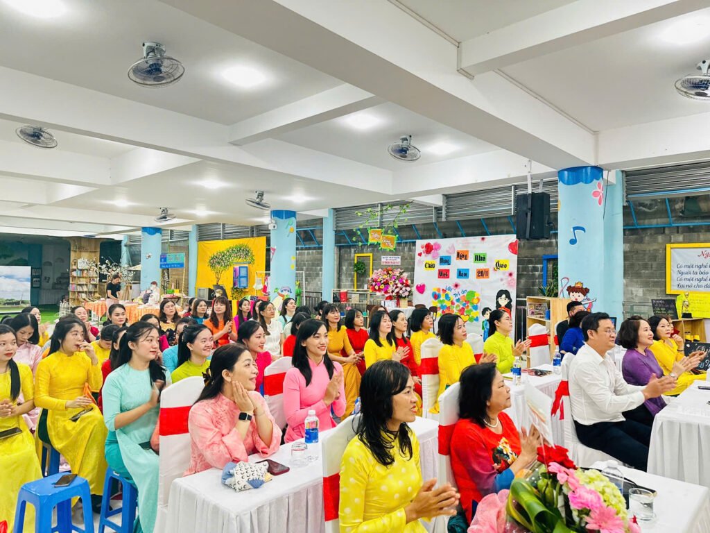 Cũng nhân ngày lễ ý nghĩa này, nhà trường tổ chức buổi gặp mặt thân mật chia tay cô Nguyễn Thị Thanh Tâm – Nguyên giáo viên nhà trường và cô Nguyễn Thị Thanh Dung – Cựu giáo viên nhà trường. Hai cô đã cống hiến hết mình cho sự nghiệp xây dựng và phát triển nhà trường, sự nghiệp chăm sóc giáo dục trẻ bằng cả tấm lòng, tình yêu thương dành cho nghề nghiệp cao quý này.