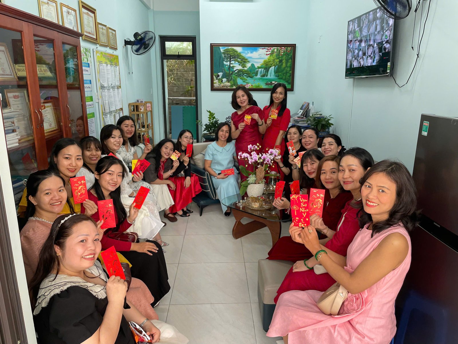Tại buổi gặp mặt, Ban Giám hiệu nhà trường đã gửi lời chúc mừng năm mới sức khỏe, hạnh phúc và thành công đến toàn thể đội ngũ. Những phong bao lì xì đỏ may mắn đã được trao tận tay các thành viên, tượng trưng cho sự khởi đầu thuận lợi và vạn sự như ý.